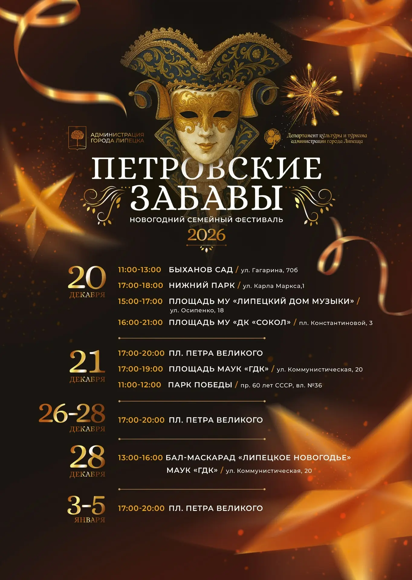Фестиваль «Петровские забавы» не ограничится одним днём. Когда, где и во сколько пройдут новогодние мероприятия смотрите в афише.