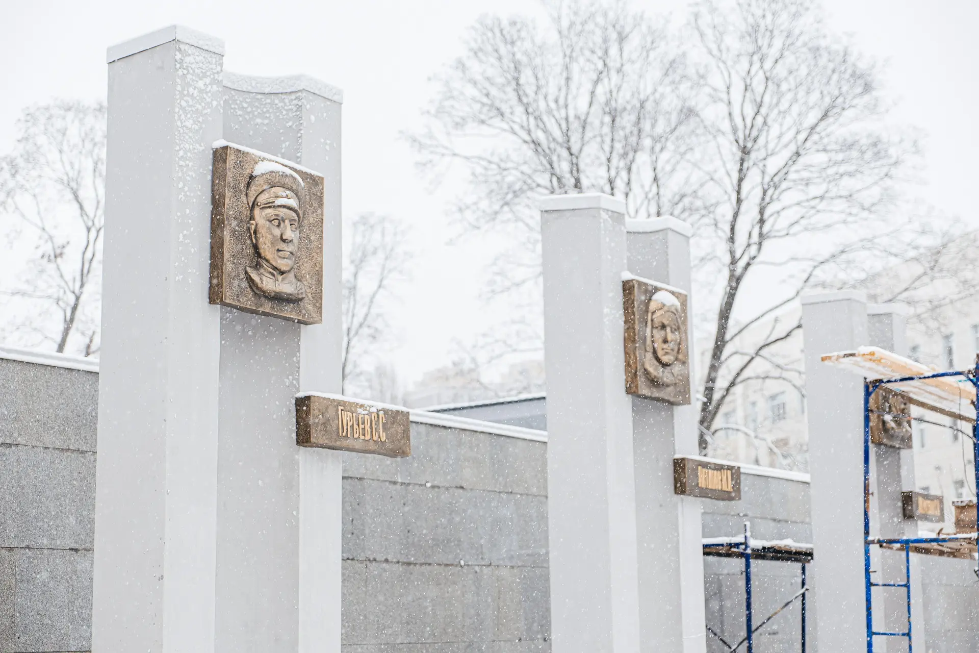 Самое сложное уже позади. Полностью обновили «костяк» мемориала – усилили фундаменты и все несущие конструкции. Внутри комплекса провели полное техперевооружение: даже газопровод к «Вечному огню» теперь соответствует современным стандартам. Территория вокруг тоже заметно преобразилась – 6 голубых елей, 3 туи и 6 краснолистных клёнов, ведётся укладка рулонного газона. Для них смонтирована система автополива. Установлены и новые фонари, чтобы пространство было светлее и безопаснее.
