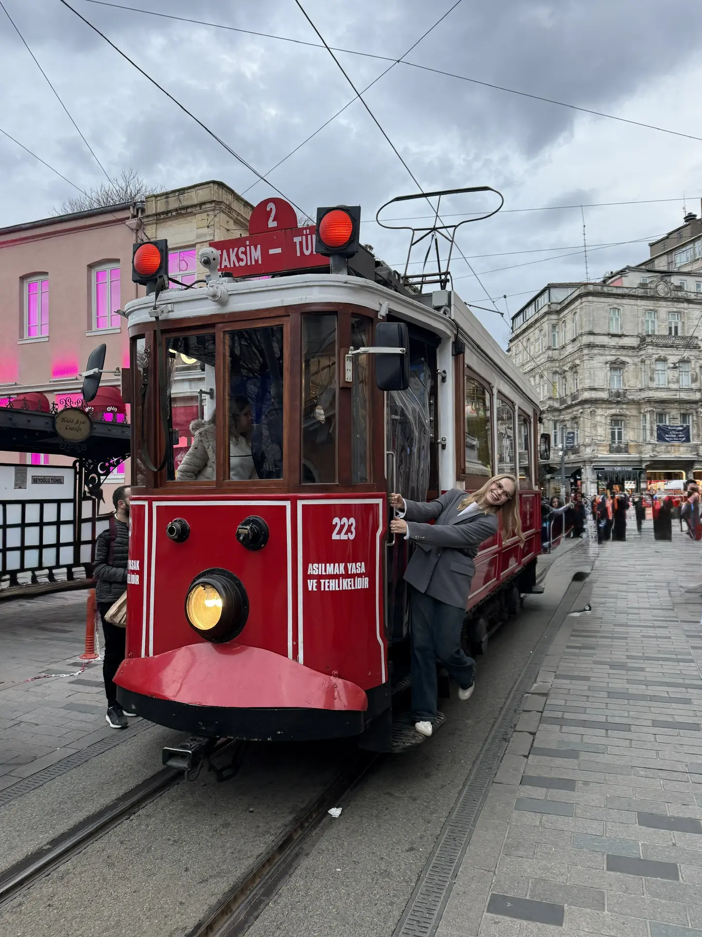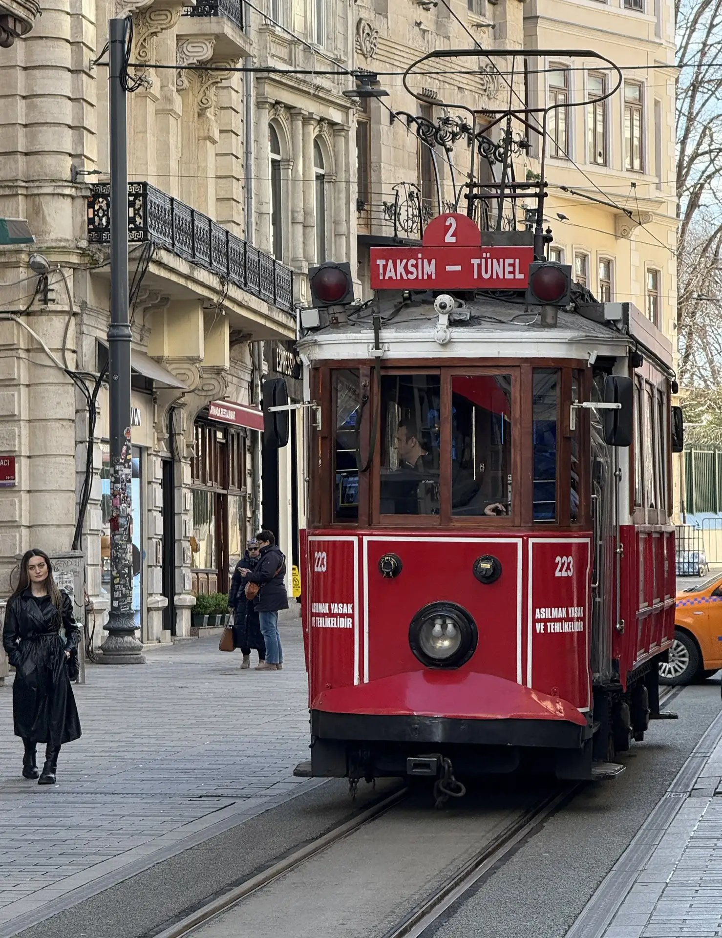 Еще одна визитная карточка Стамбула - это трамвайчики, которые проходят через площадь Таксим. Они следуют по заданному маршруту, но при этом делают длительные остановки, на которых туристы устраивают фотосессии. Необычно и интересно.