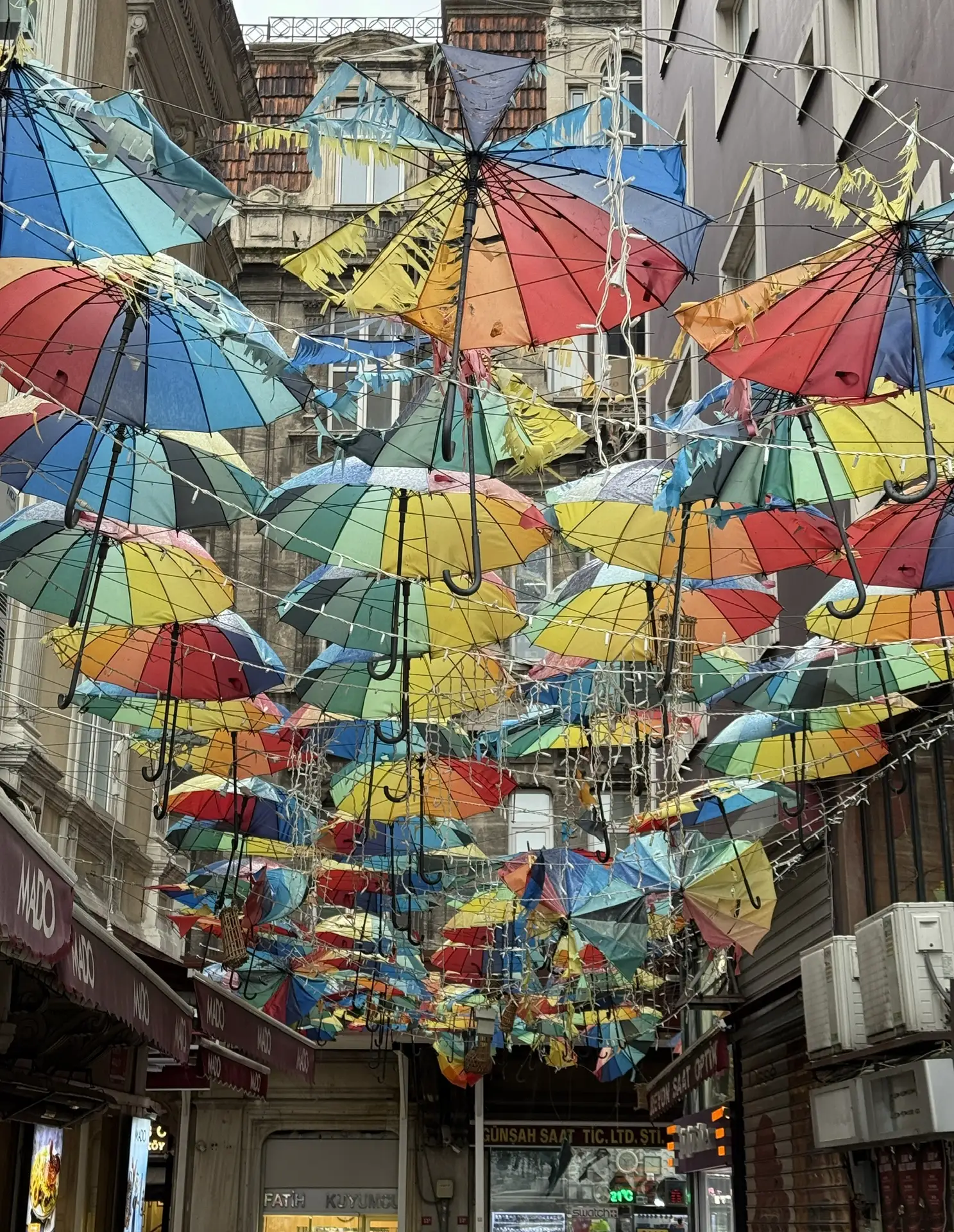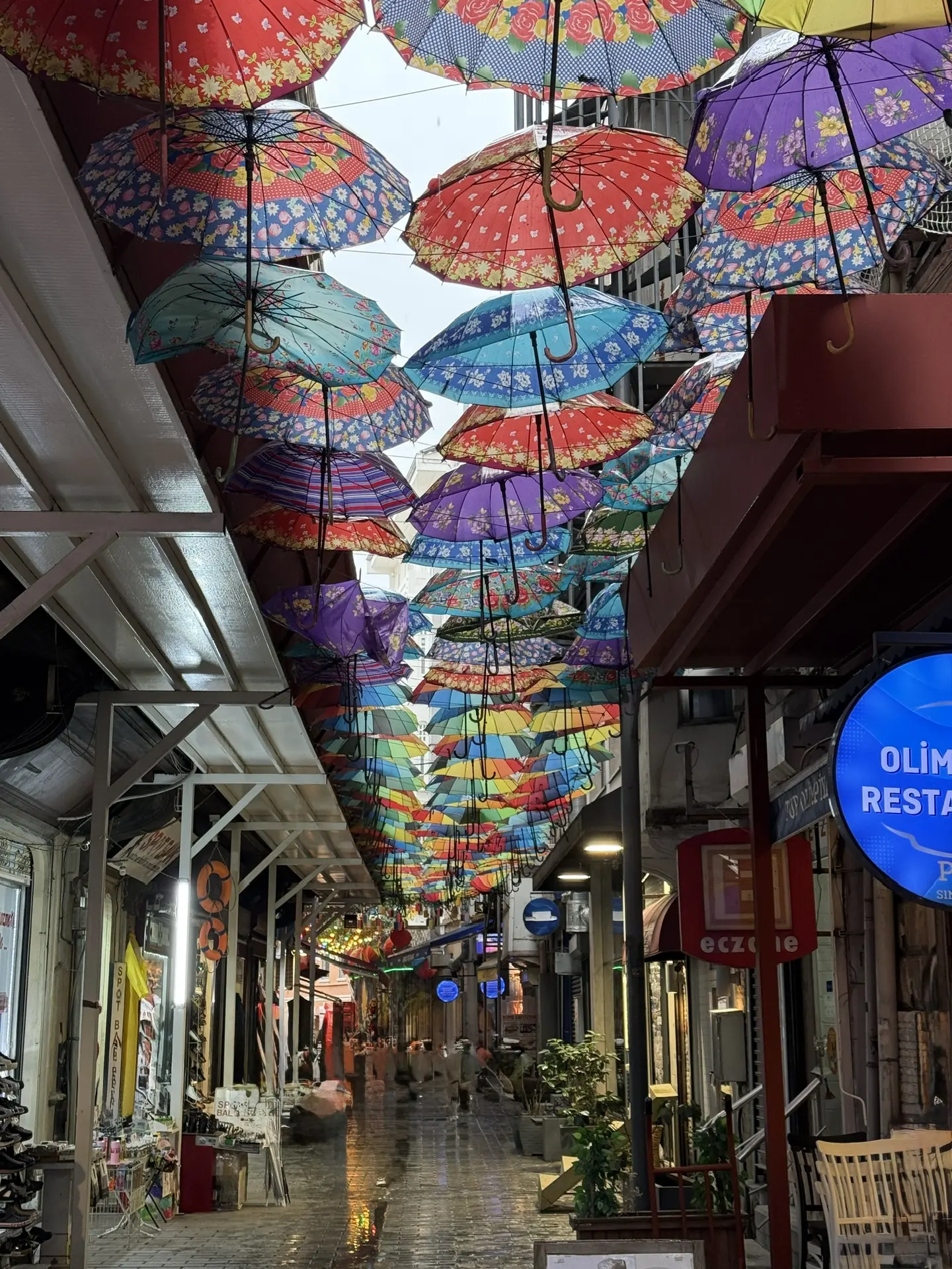 Знаменитый туристический переулок с зонтиками в Стамбуле меня не впечатлил - встречал гораздо более интересные места. Насколько я знаю, именно эта улица считается прародительницей всех «Umbrella Street». Если я ошибаюсь, дайте знать в комментариях!