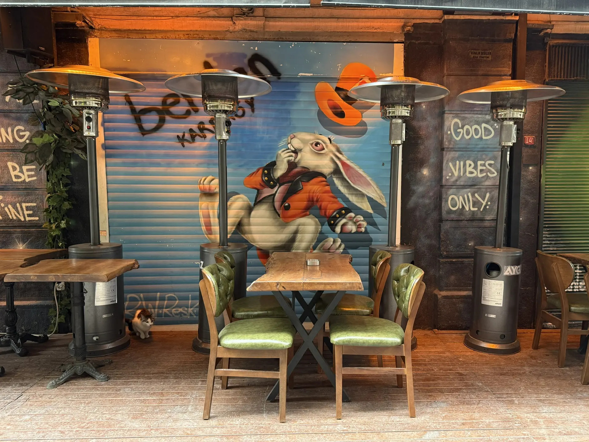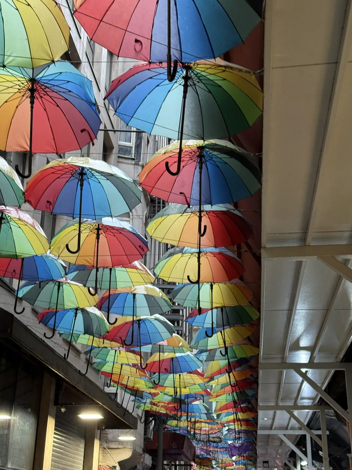 Однако факт остается фактом: улица выглядит неухоженно, зонты обшарпанные и рваные. Вместо уютных кафешек и фотозон здесь только закрытые рольставни с граффити, нарисованными баллончиком. Постапокалиптическое зрелище какое-то! К тому же отметка на Гугл-картах указывает на параллельную улицу, где нет и намека на зонты.