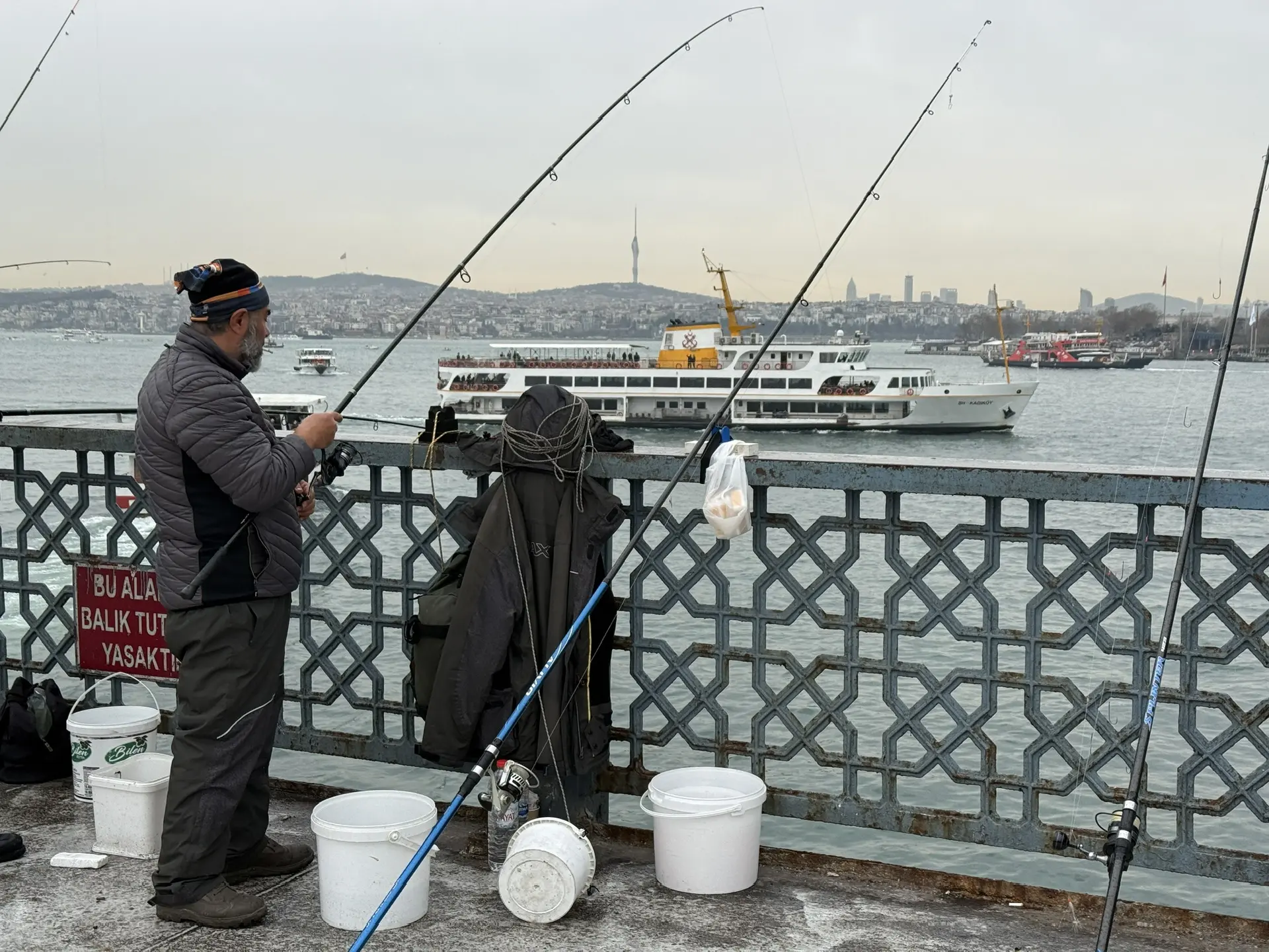 Мужчины, женщины, дети, старики - все закидывают удочку в Босфор. Складывается ощущение, что это такой некий вид спорта у местных. Ведь явно занимаются они этим не от голода; Рыбачат они с самого рассвета и до позднего вечера, тысячи людей на этих 484 метрах вылавливают мелкую рыбешку. При том за те дни, что я был в Стамбуле, ни разу не видел ни у кого в ведерке что-то крупное, хотя ежедневно ходил через Галатский мост на тот берег. Видать крупный улов отпускают обратно?! Такое мнение почему-то у меня, хотя могу ошибаться…