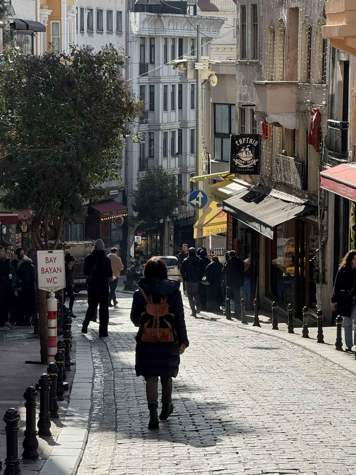 Если перейти на ту сторону Босфора, то ритм ускоряется и неспешные прогулки превращаются в движение; На той стороне находится метро, где вечный поток из бегущих куда-то людей, на набережной десятки уличных торговцев и зазывал, которые предлагают прокатиться на корабле. Шумно, беспокойно и хочется быстрее сбежать на эту сторону пролива, сесть на лавочку, купить кофе с булочкой и замереть под звуки скрипки.