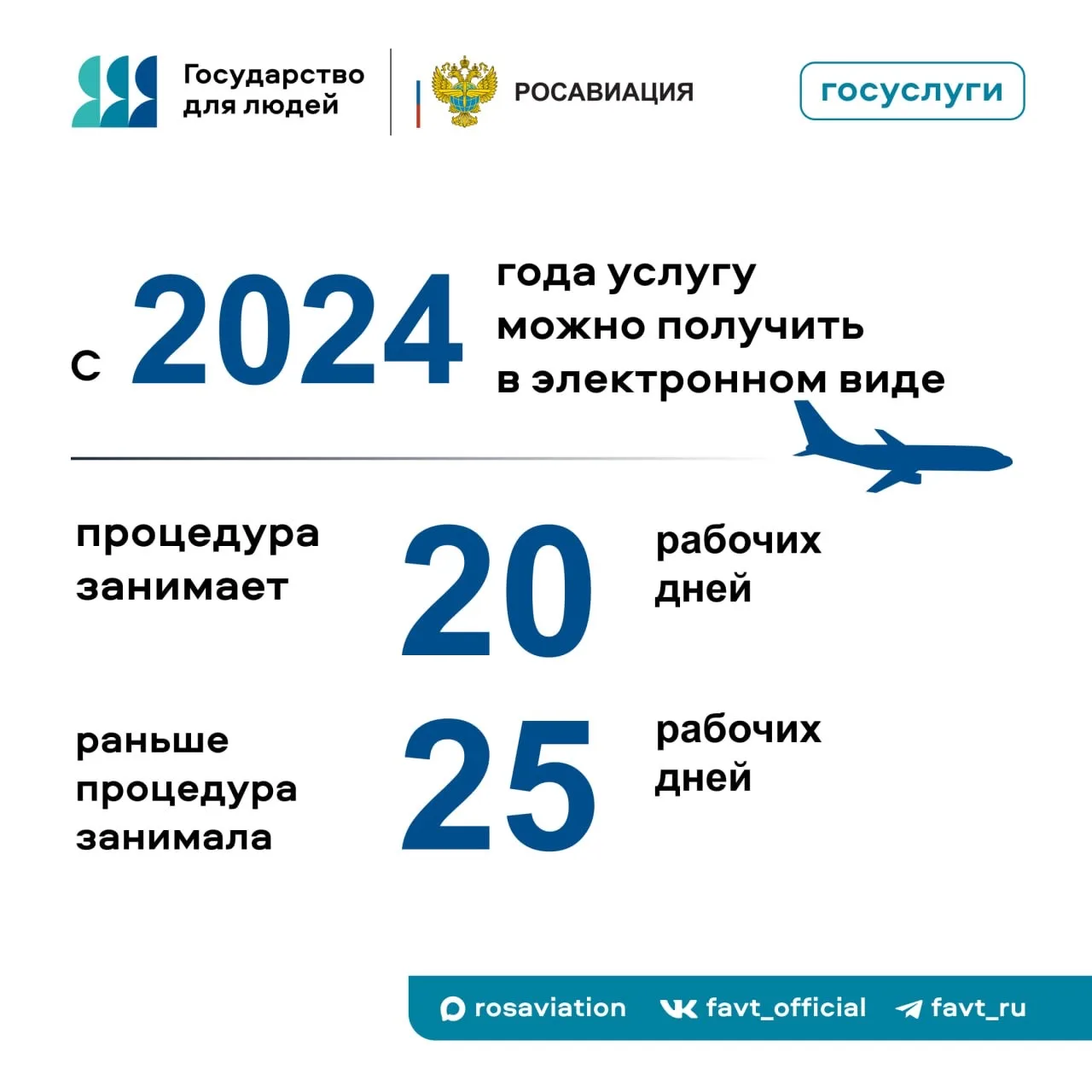 🔹С 2024 года подать заявление стало возможно онлайн через Единый портал государственных услуг, а также на сайте и через Единое окно Росавиации.