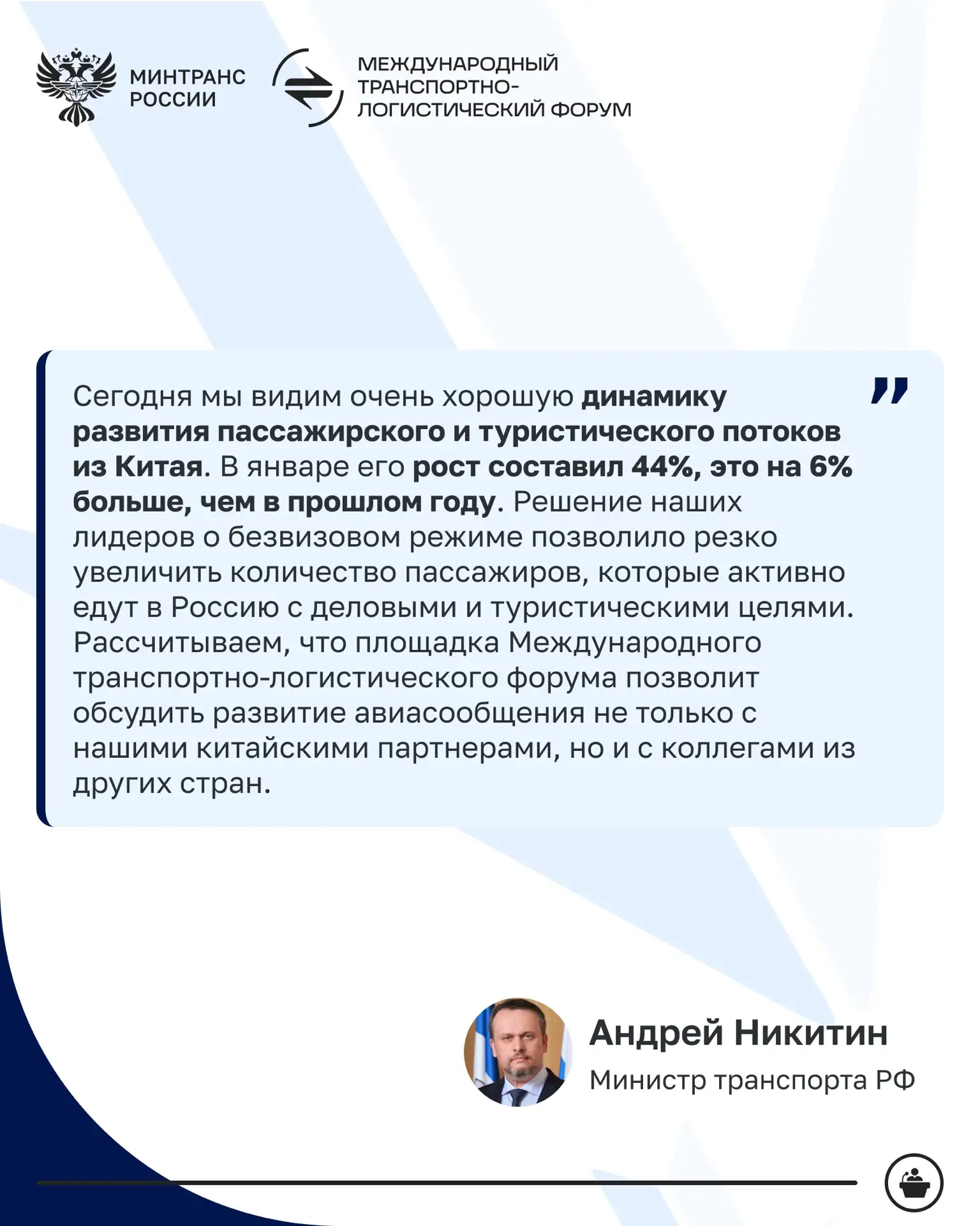 🔹Международные коридоры: прорабатывается вопрос с китайской стороной о спрямлении маршрутов для дальневосточных рейсов через воздушное пространство КНР, что позволит сократить время в пути.