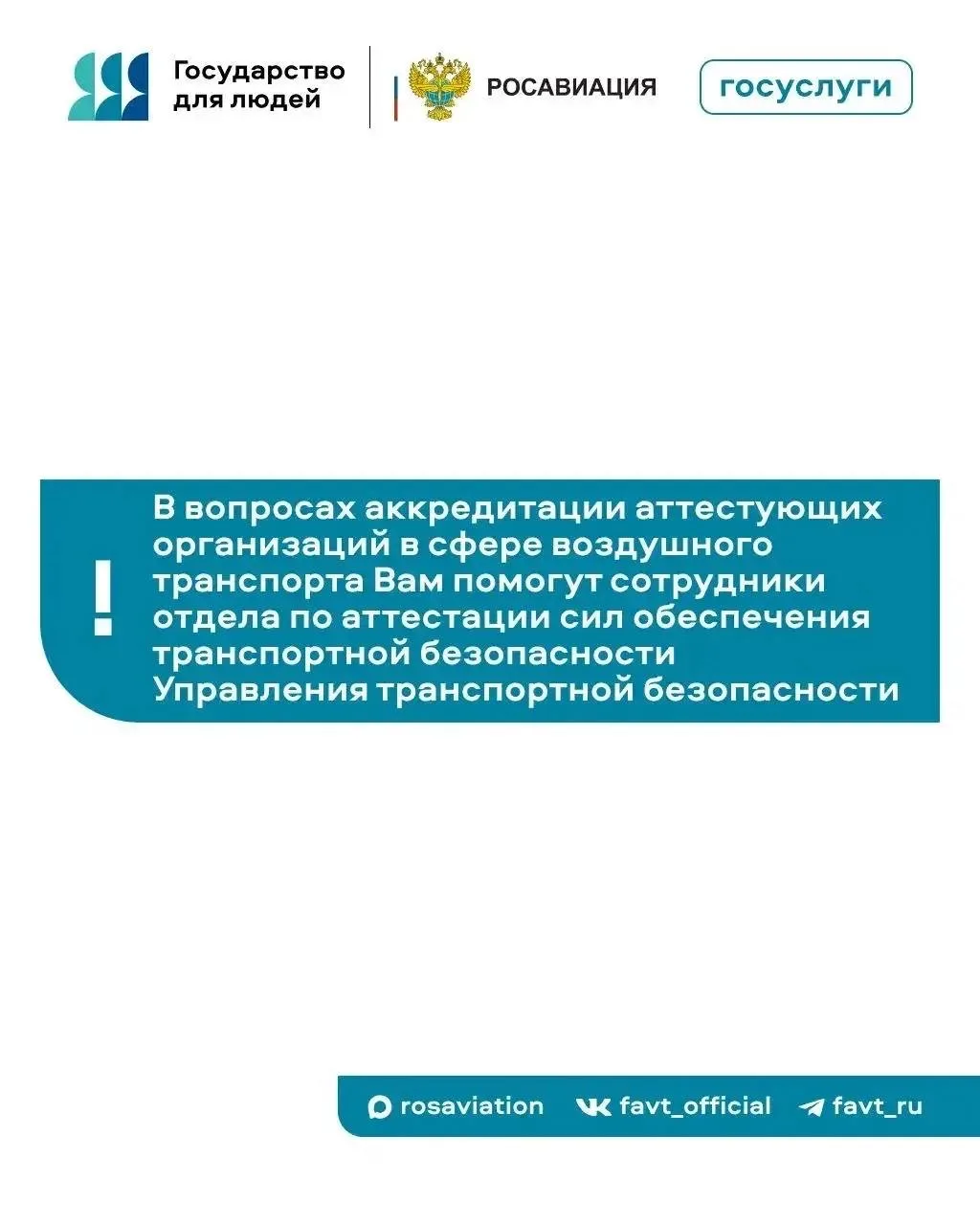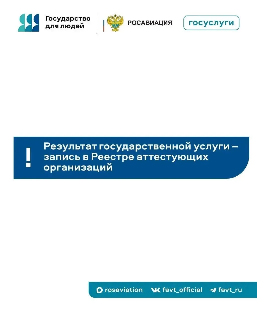 Продолжаем рассказывать о госуслугах Росавиации по направлению транспортной безопасности. Одна из них связана с аккредитацией аттестующих организаций в сфере воздушного транспорта — соответствующая запись в реестре появится после успешного прохождения процедуры. Сейчас статус аттестующей организации имеет 21 юридическое лицо.