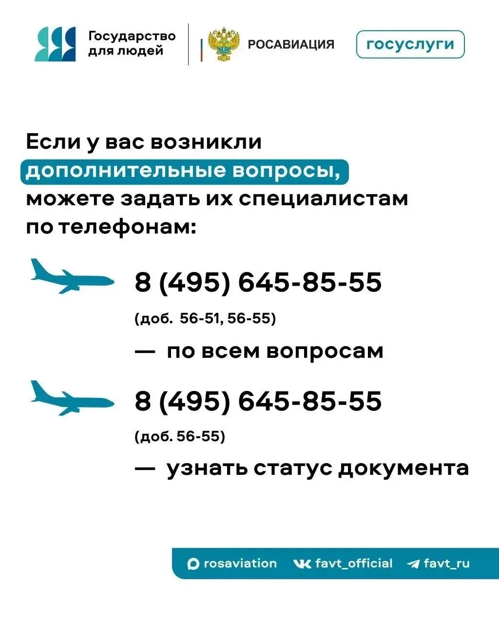 🔹Дополнительная информация указана на сайте Росавиации (https://favt.gov.ru/public/materials//0/7/1/8/7/07187f230ec648a64c1f07f8ccfad2bf.pdf)