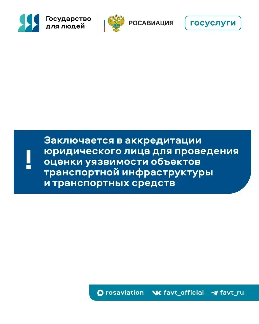 Сегодня расскажем о госуслуге Росавиации, необходимой для проведения оценки уязвимости объектов транспортной инфраструктуры и транспортных средств. К этой процедуре допускают только аккредитованные агентством организации.