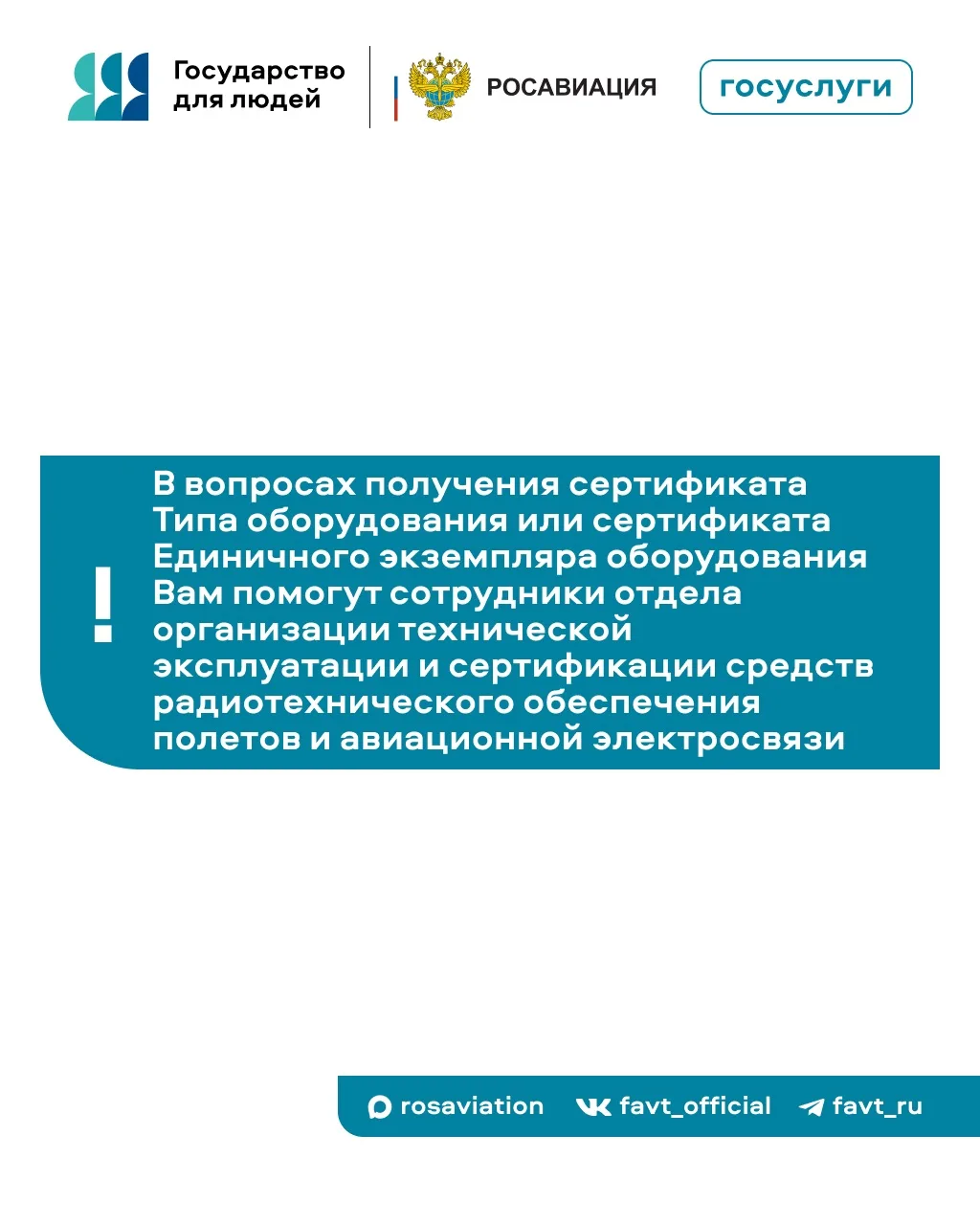 В карточках объясняем, как получить сертификат Типа или Единичного экземпляра радиотехнического оборудования или оборудования авиационной электросвязи, используемых для обслуживания воздушного движения.