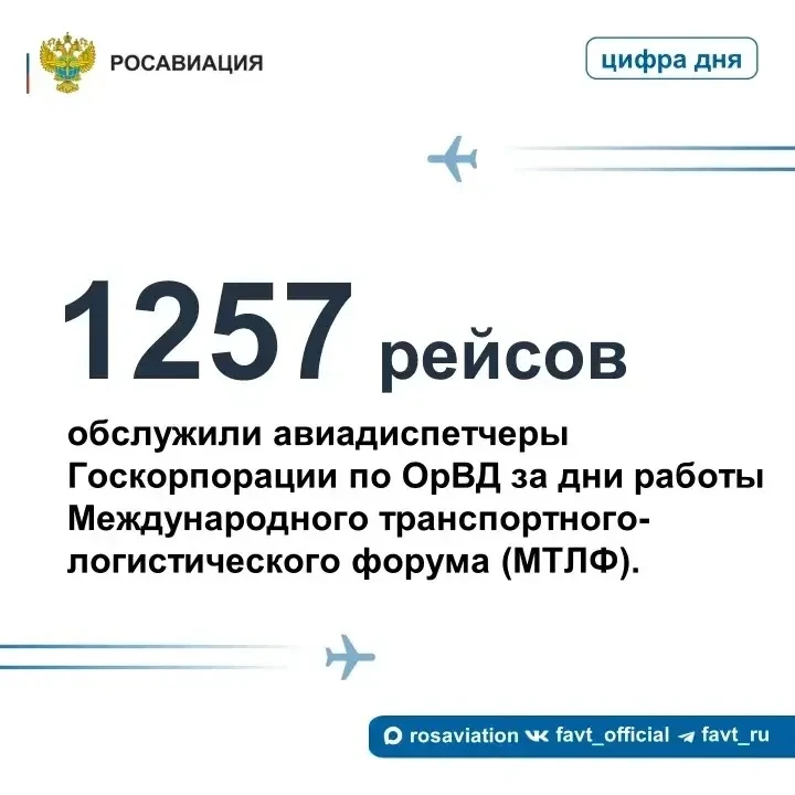 ➡️За это время специалисты подведомственной Росавиации Госкорпорации по ОрВД обслужили 1257 рейсов.