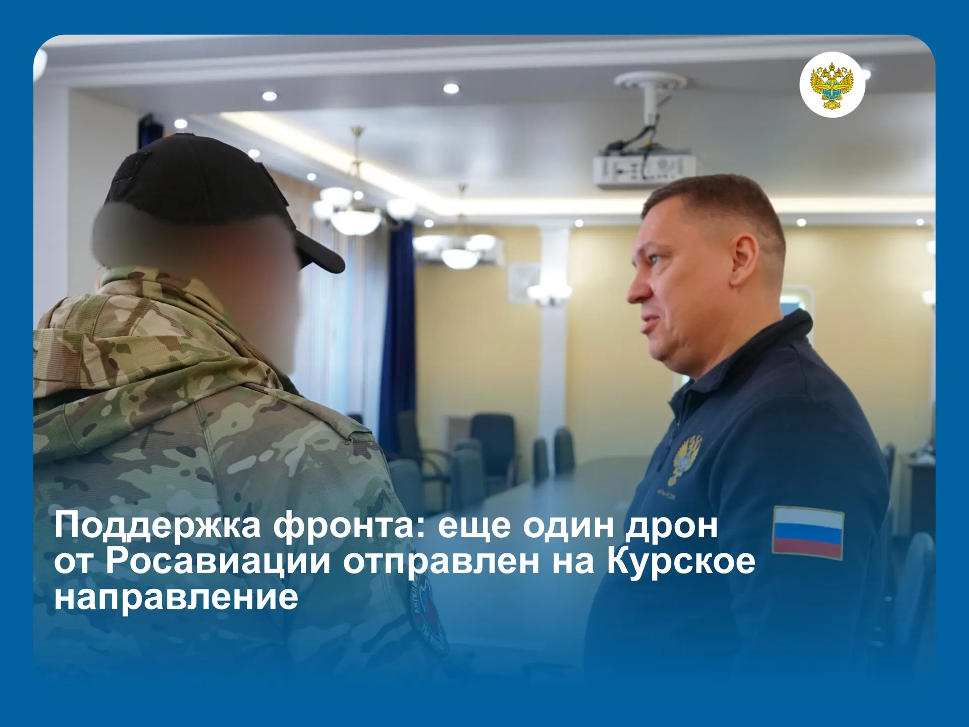 Заместитель руководителя Росавиации Сергей Страмоус от коллектива агентства передал бойцам СВО квадрокоптер Mavic 3 Pro и необходимые комплектующие.