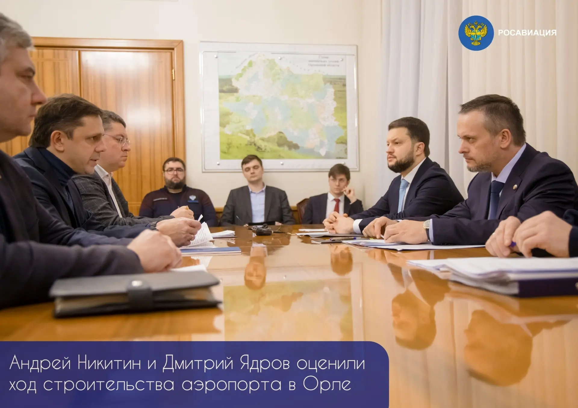 С ходом строительства аэропортового комплекса Орёл-Южный ознакомились министр транспорта РФ Андрей Никитин и руководитель Росавиации Дмитрий Ядров.