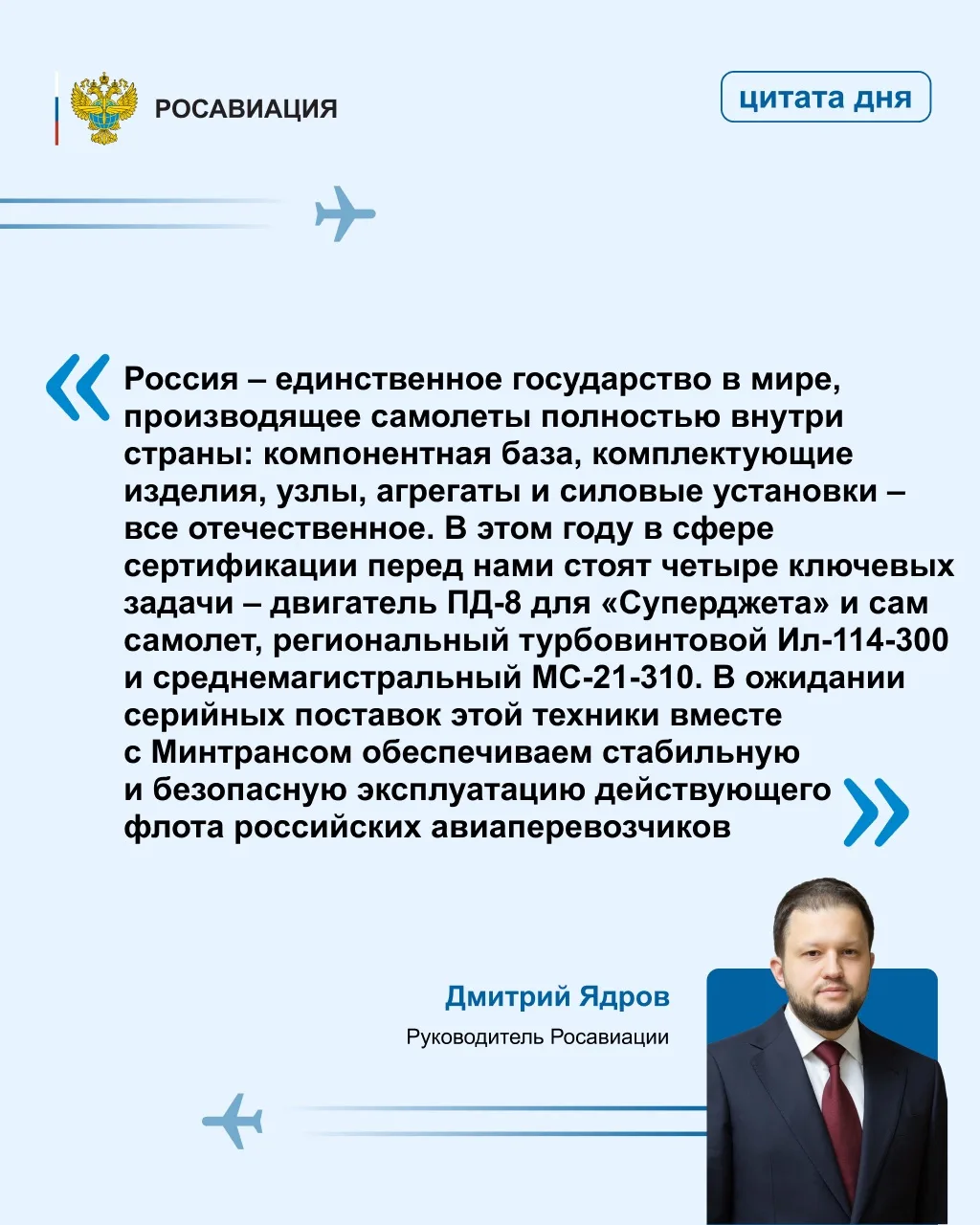 Ключевые задачи Росавиации по сертификации на 2026 год: