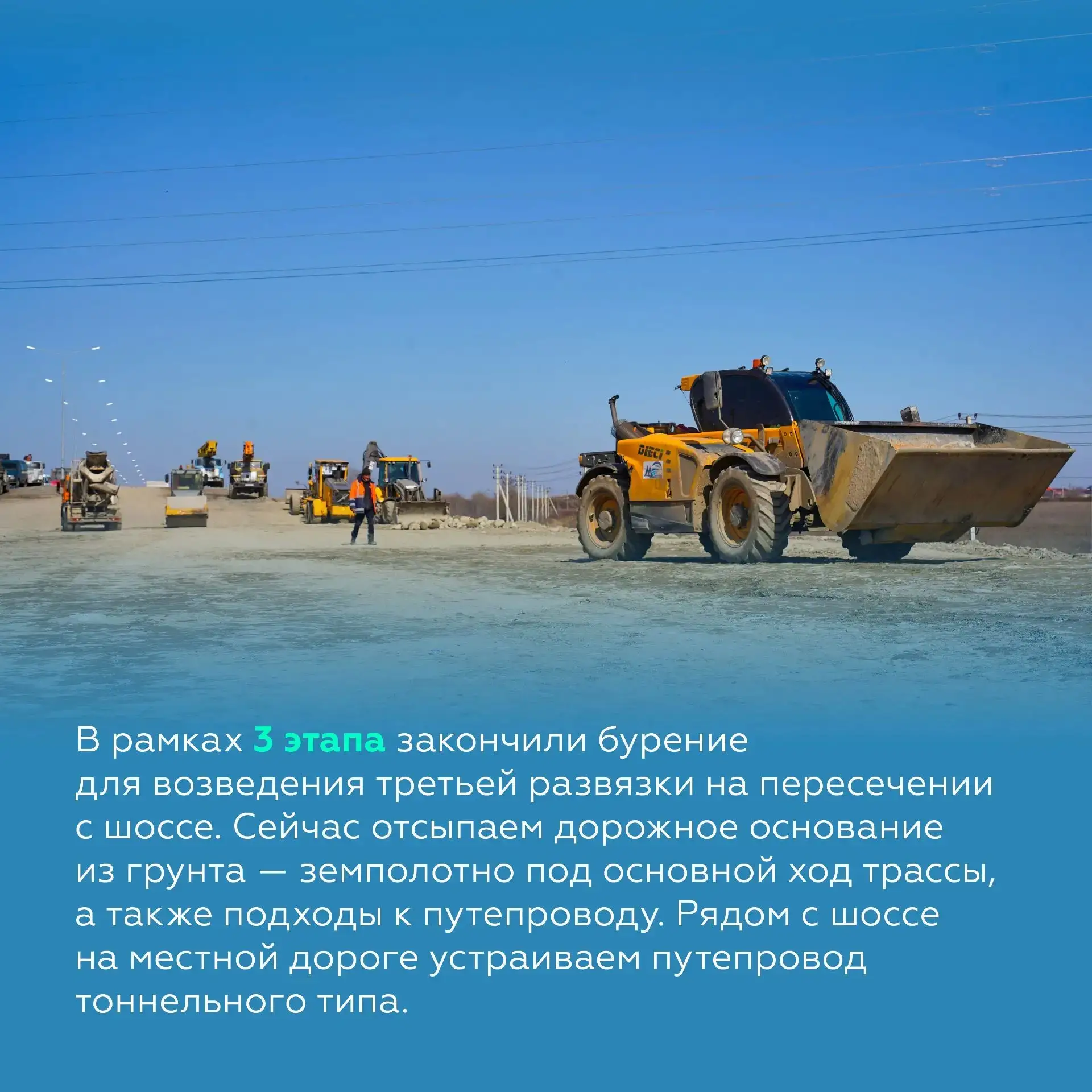Сейчас активно ведём земляные работы и строим будущие искусственные сооружения. В этом году начнём устройство нижнего и верхнего слоёв основания, а также укладку нижнего слоя покрытия.