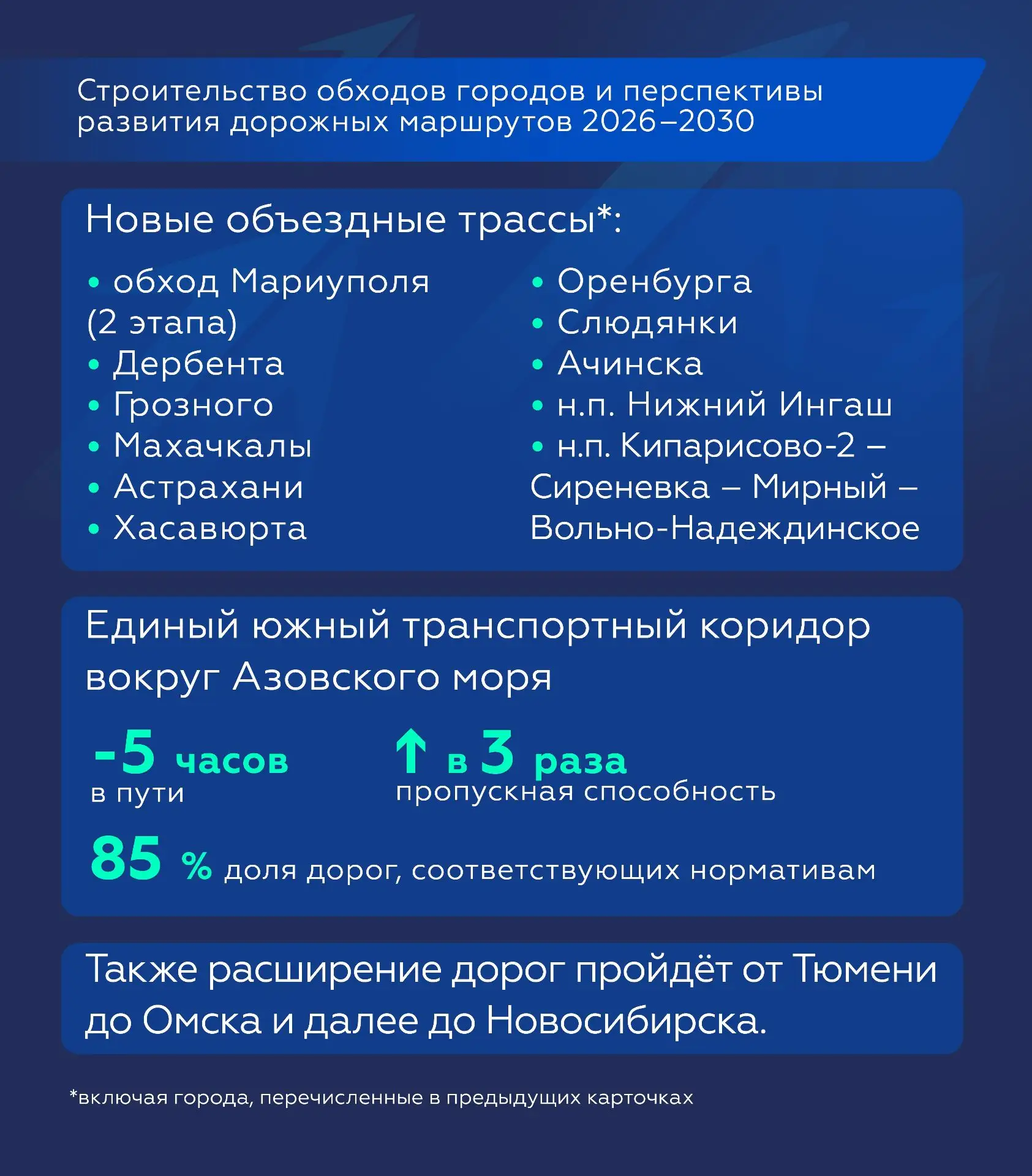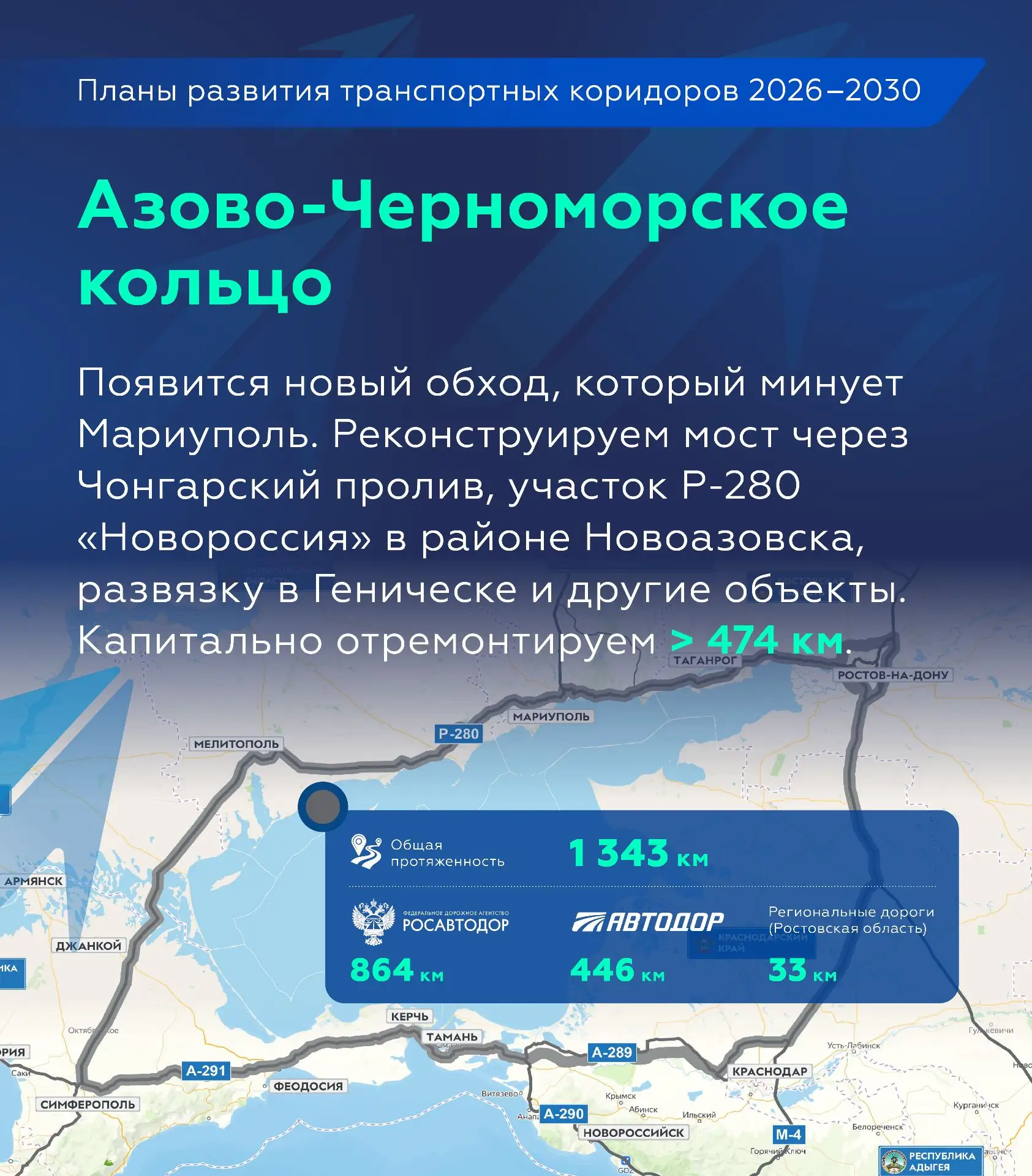 ▫️уделим особое внимание обновлению дорог на Юге России — в частности, в составе Азовского транспортного кольца