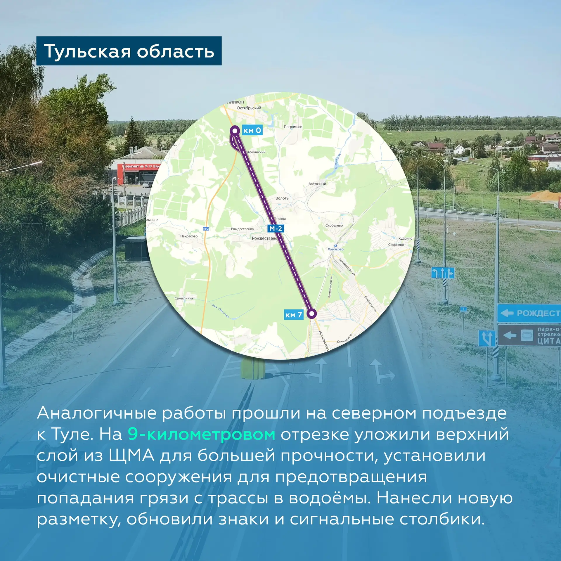 Работы прошли на М-9 «Балтия», М-8 «Холмогоры», М-2 «Крым», М-5 «Урал», А-108 «Московское большое кольцо», А-104 «Дмитровское шоссе».