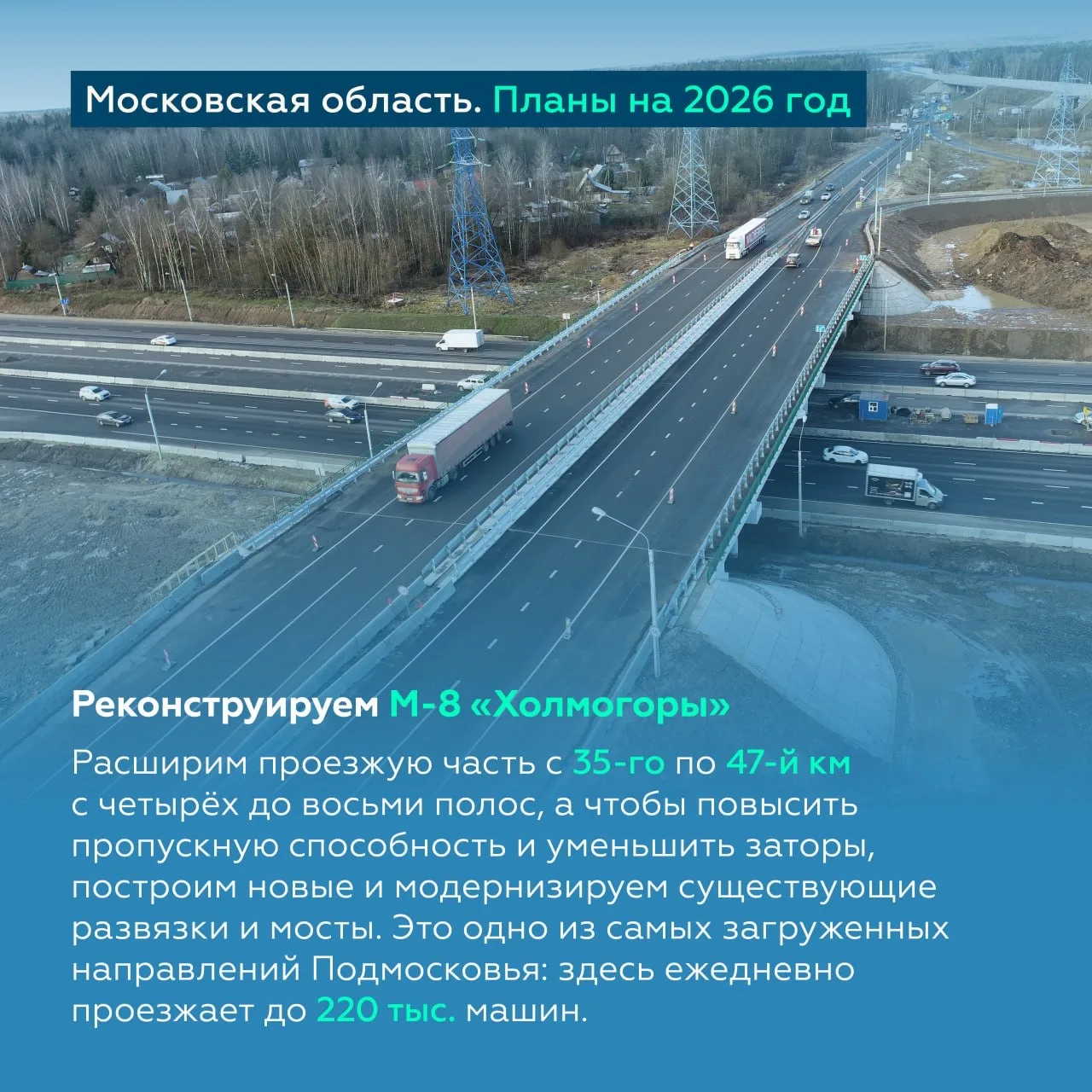 Помимо прочего, проектируем капремонт с 54-го по 83-й км — планируем начать перевод в четырёхполосное исполнение в этом году.
