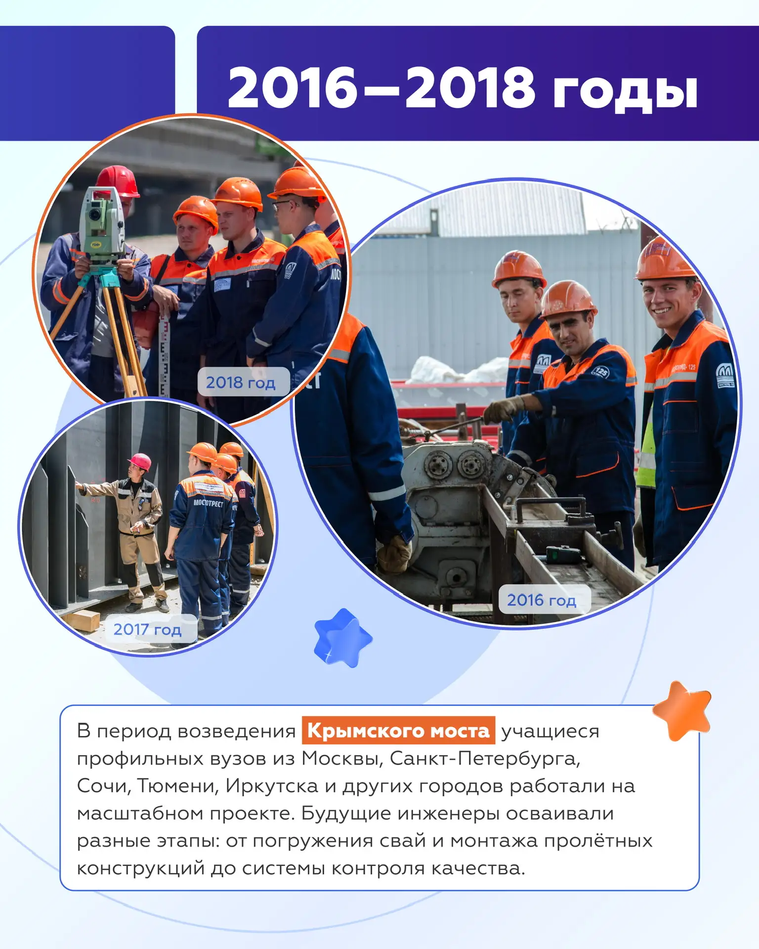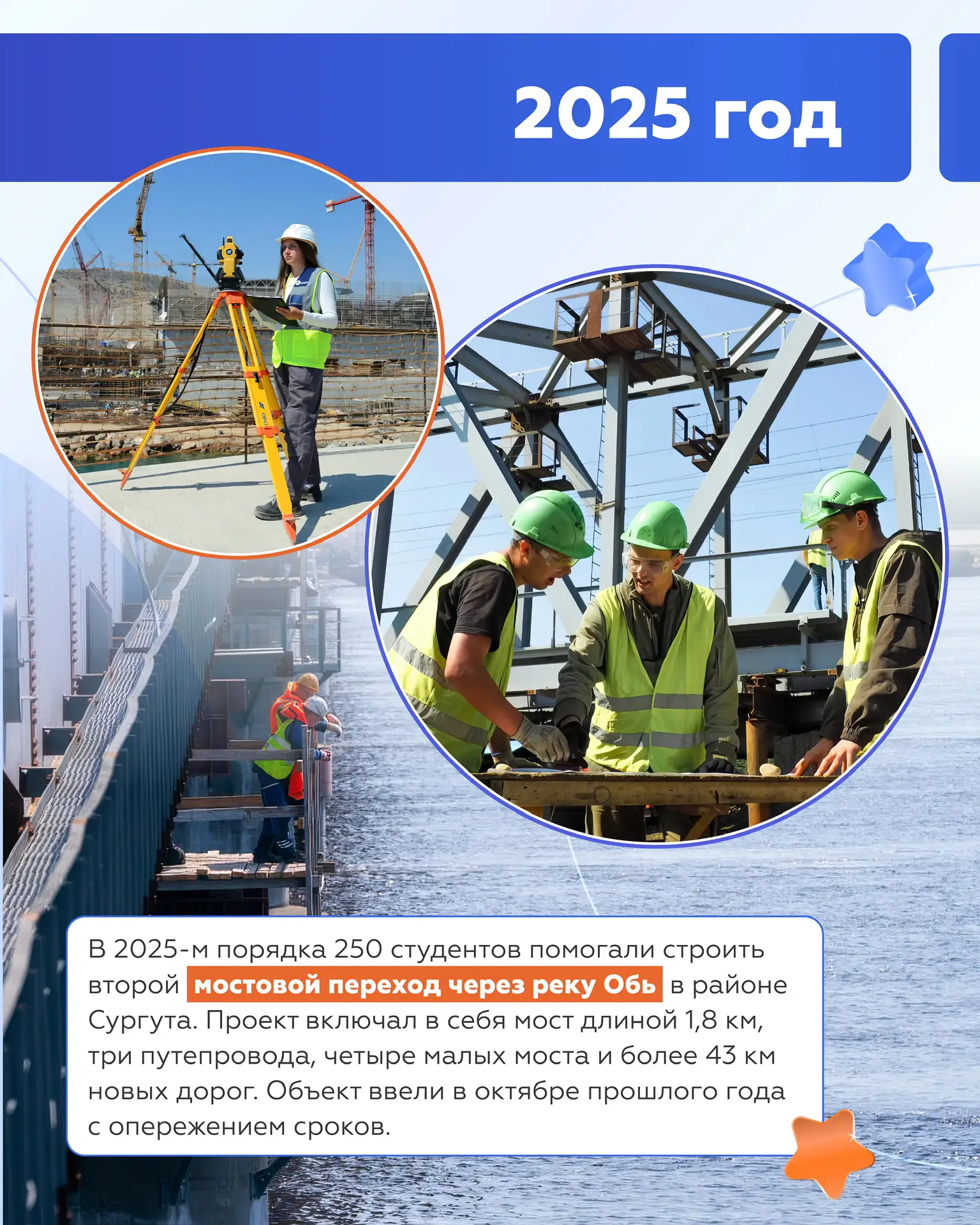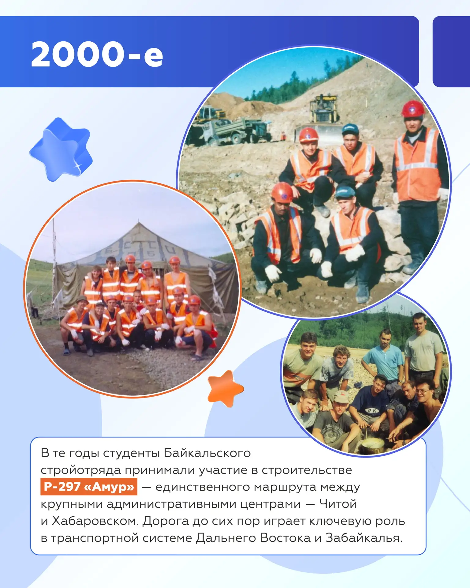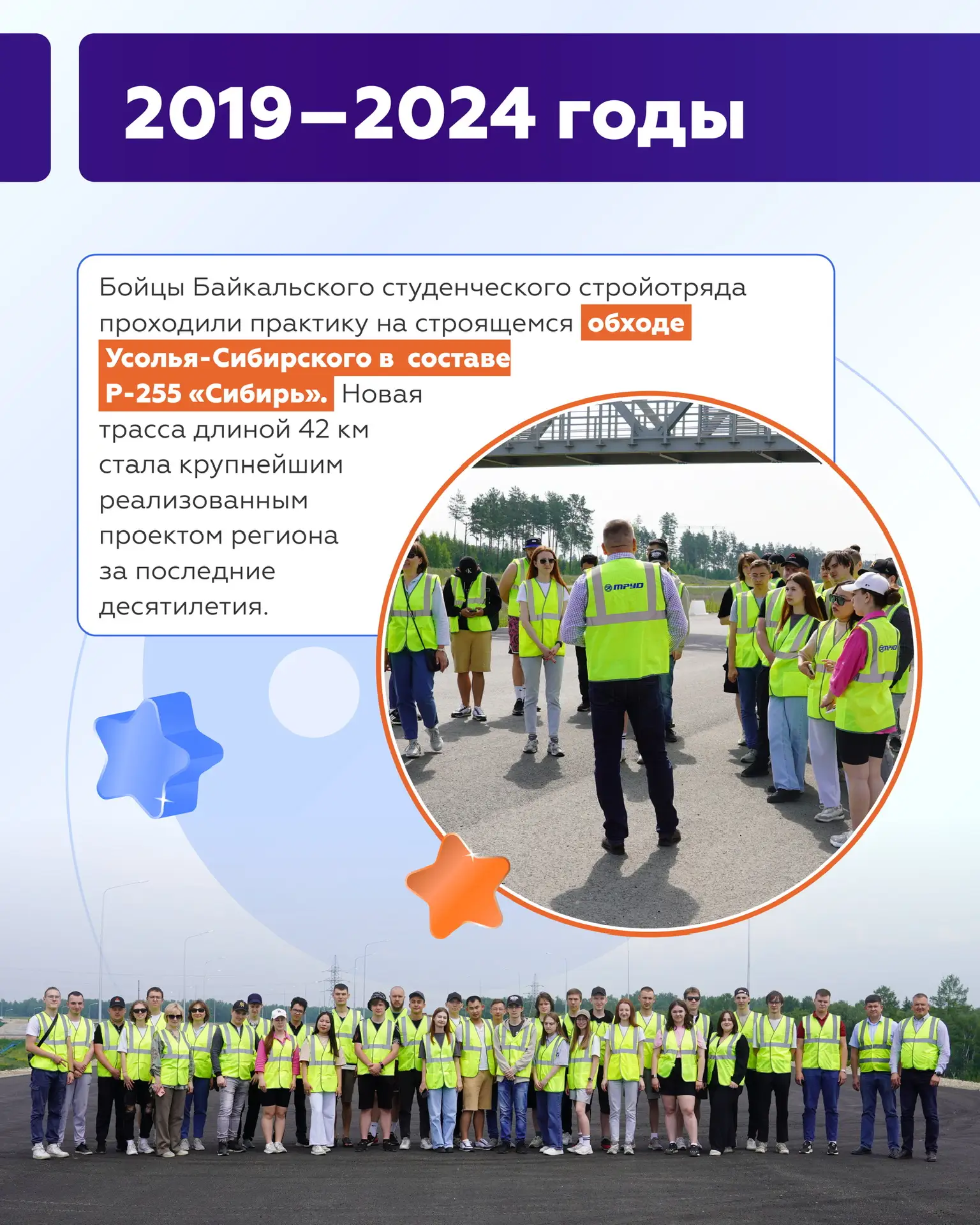 За прошедшие десятилетия студенты участвовали в создании и обновлении федеральных трасс, развязок и мостов — от Дальнего Востока до Центральной России. Каждое поколение вносит свой вклад в развитие транспортной системы страны.
