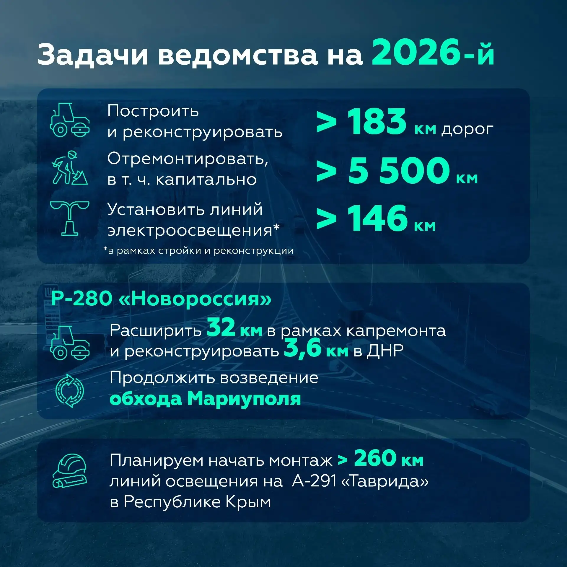 Основная цель на 2026-й — продолжать модернизацию дорог и повышать безопасность движения. Удобные и быстрые магистрали — это основа развития различных секторов экономики России😎