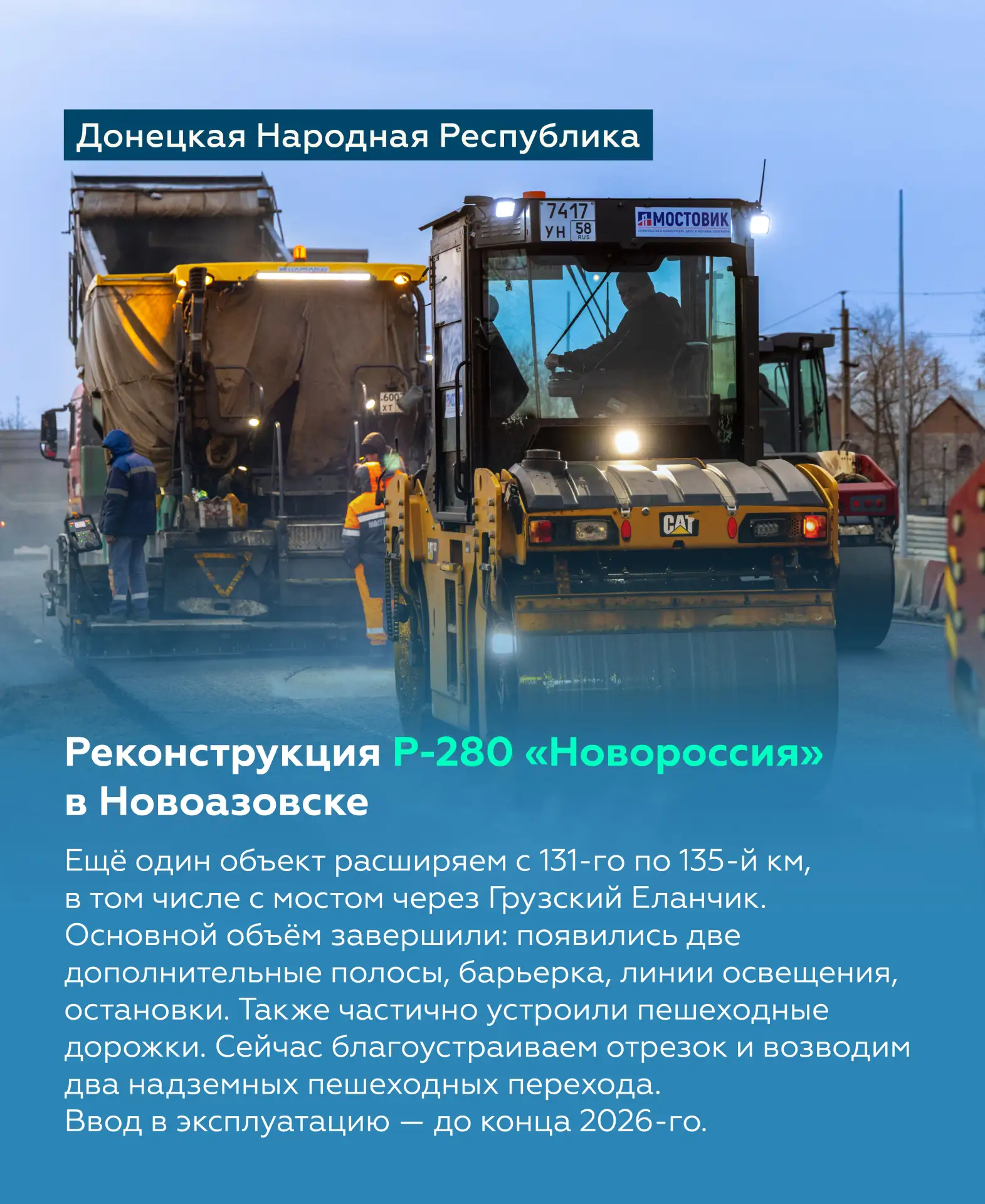 В сегодняшнем списке — объекты в ДНР, а также в Рязанской, Московской, Свердловской и Челябинской областях. Часть из них введём в эксплуатацию уже в этом году.