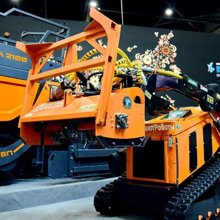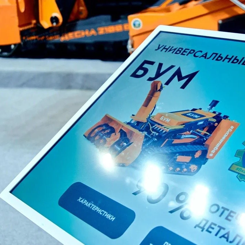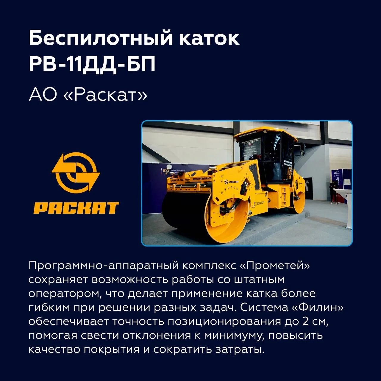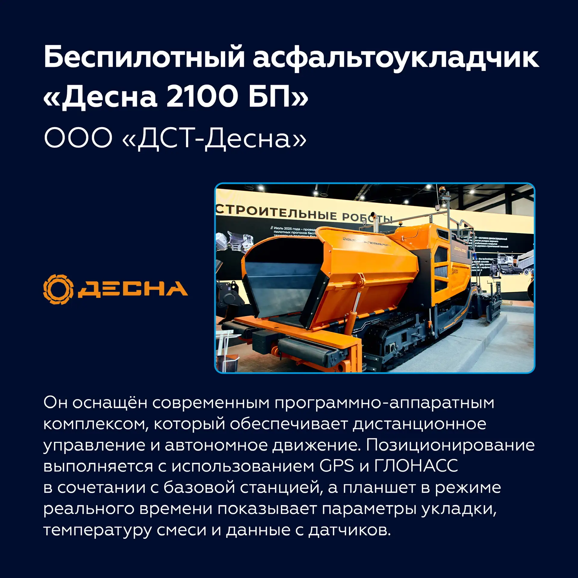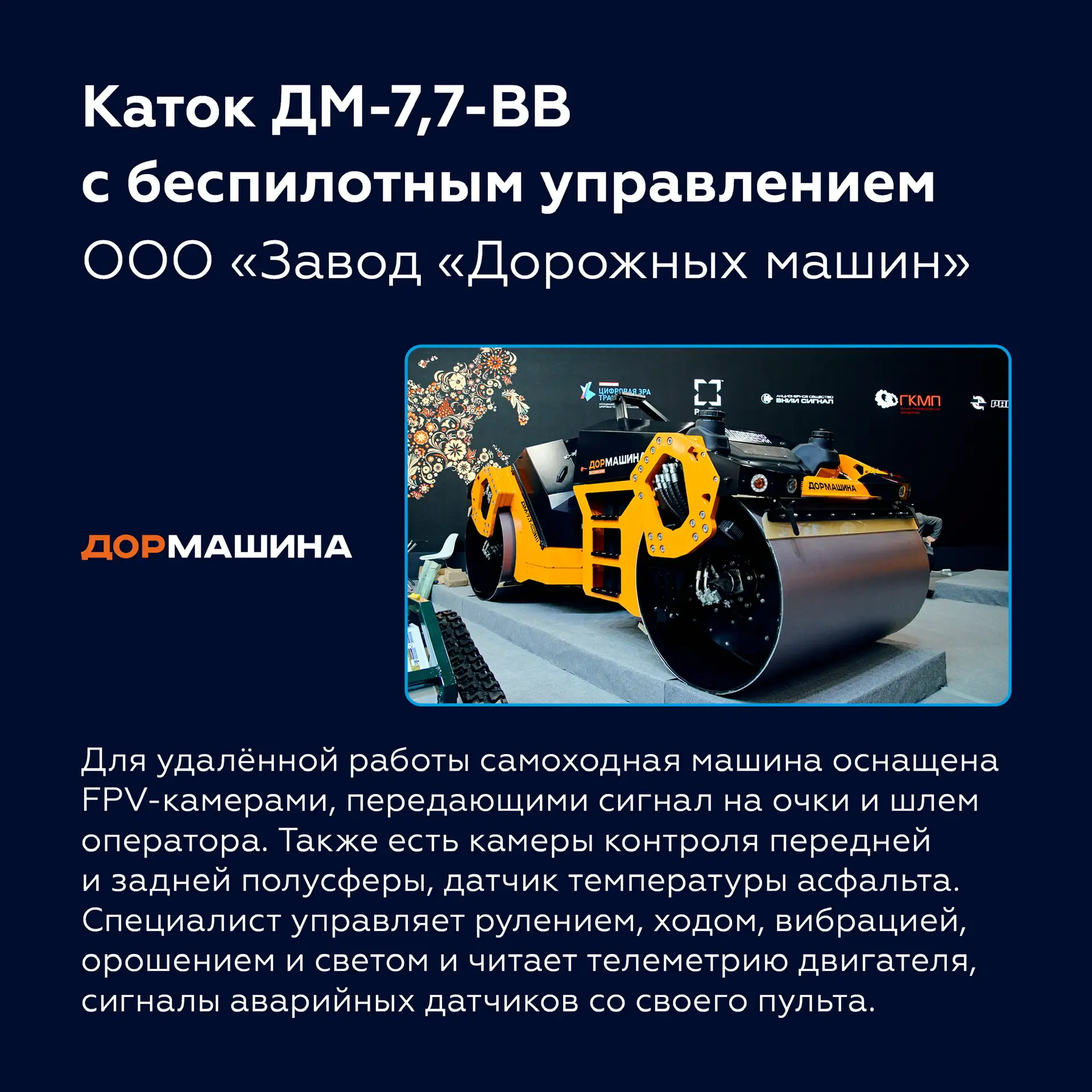 ➡️ Собрали красивую экспозицию отечественной роботизированной техники, среди которой — асфальтоукладчик «Десна 2100 БП», каток ДМ-7,7-ВВ