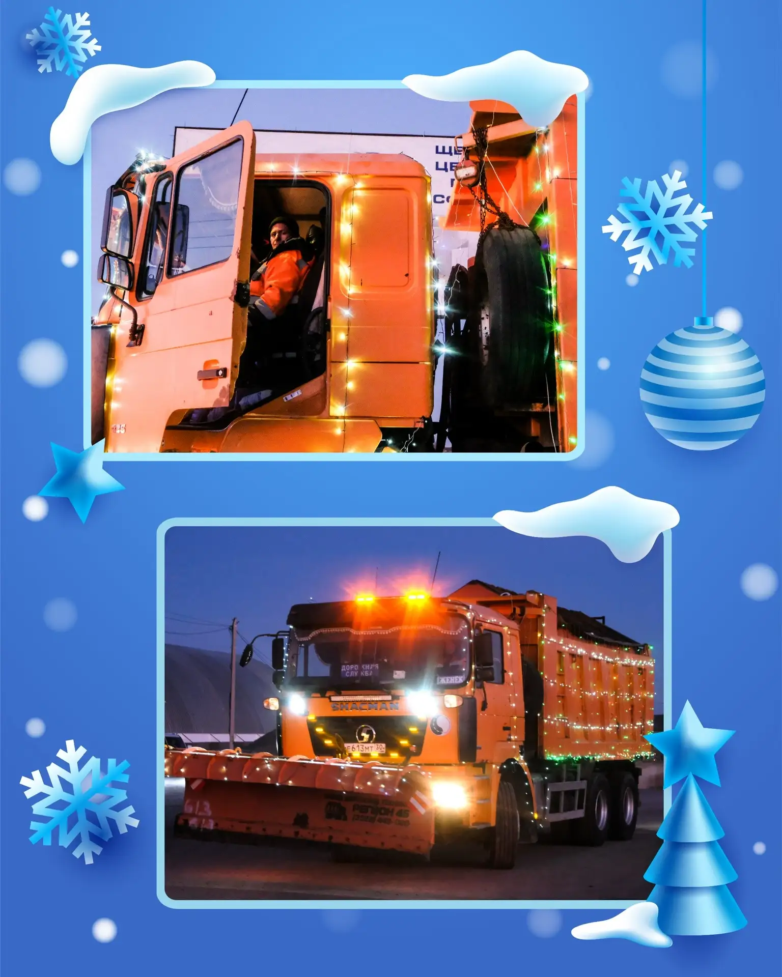 Когда за окном метель, а смена у дорожников только начинается, придать атмосферу волшебства помогают яркие украшения. В кабинах спецмашин развешиваются гирлянды и мишура, появляются маленькие ёлочки. В диспетчерских блестят снежинки на окнах и мигают огоньки. Они напоминают: зимние чудеса уже близко!