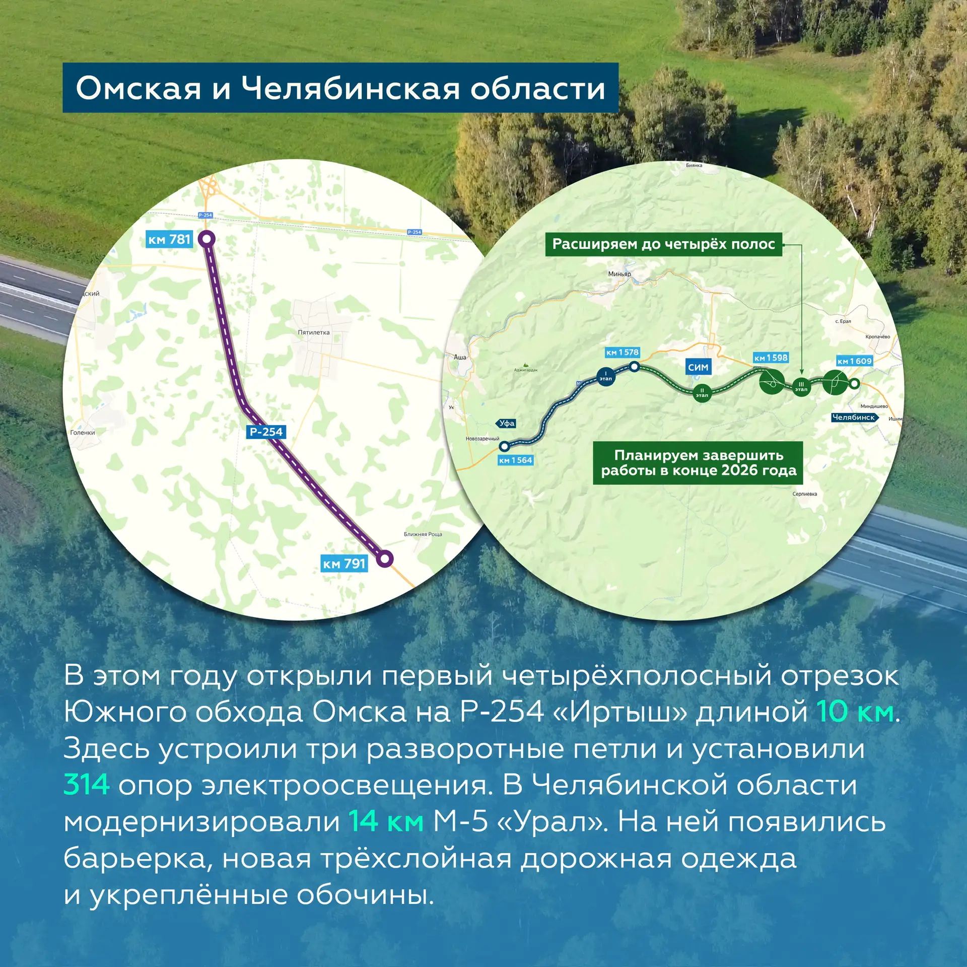 В 2025-м развернули работы на участках, общей протяжённостью 40 км. Часть из них завершена.