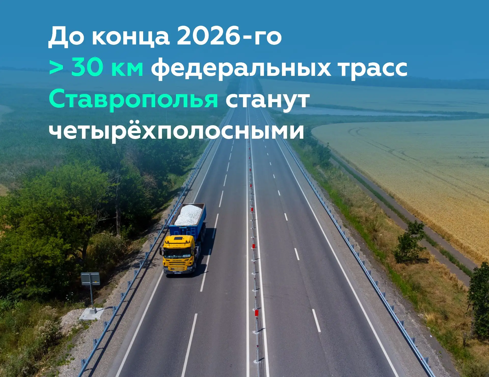 Расширим до четырёх полос > 30 км федералок Ставрополья до конца 2026-го