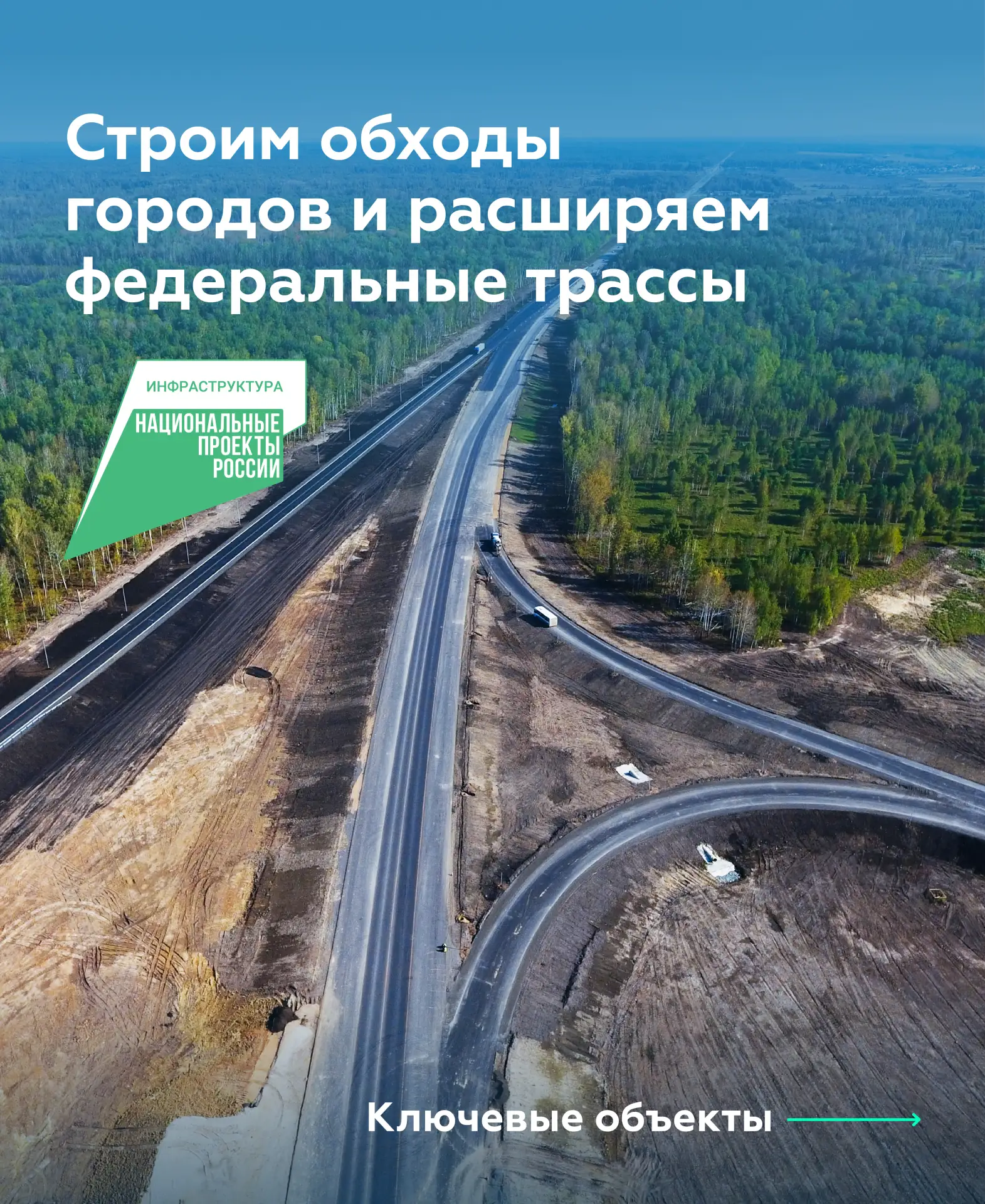 Расскажем про одни из самых ключевых объектов — это строящиеся современные обходы, которые помогут вывести транспорт за пределы населённых пунктов. Кроме того, они обеспечат комфортный проезд для тысяч водителей.