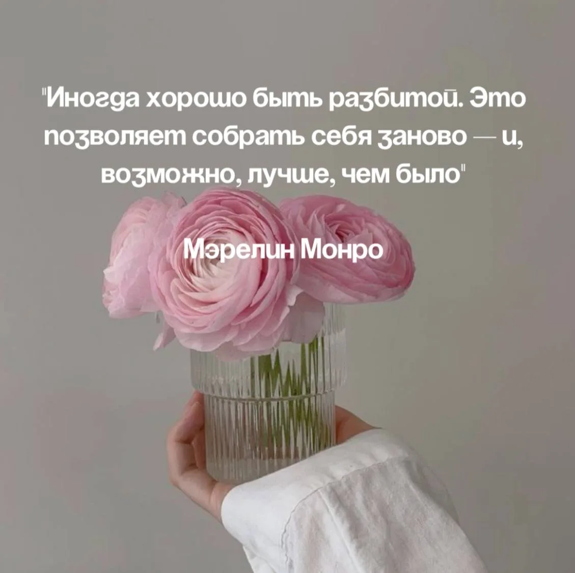Напоминание дня — "иногда хорошо быть разбитой. это позволяет собрать себя заново — и, возможно, лучше, чем было"