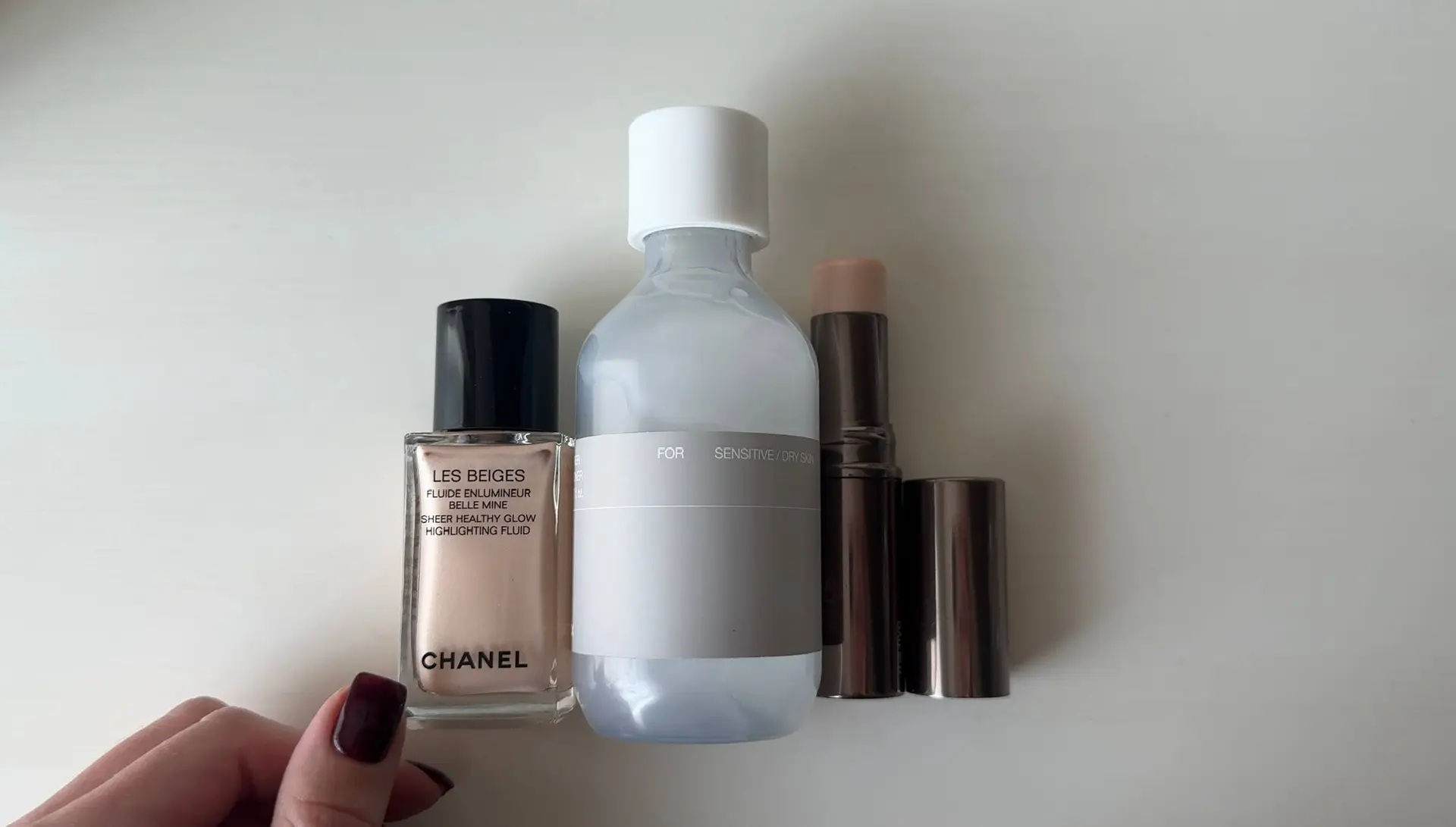 Тонер celimax для увлажнения, сияющий флюид chanel les beiges для экстра свежего эффекта и стеклянной кожи, хайлайтер в стике от ma:nyo для акцента на скулах, под бровью и на переносице.