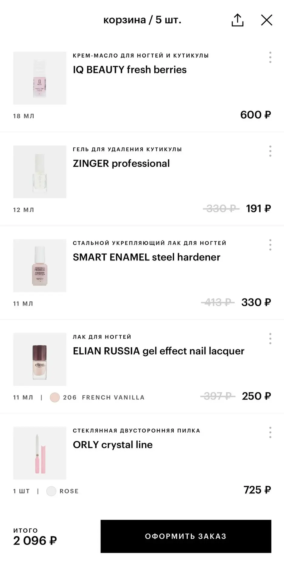 Понадобится: гель для удаления кутикулы zinger professional, масло для ногтей и кутикулы iq beauty fresh berries [быстро впитывается], стеклянная пилочка orly crystal line [удобно таскать с собой], укрепляющий лак smart enamel steel hardener и лак elian russia в красивом