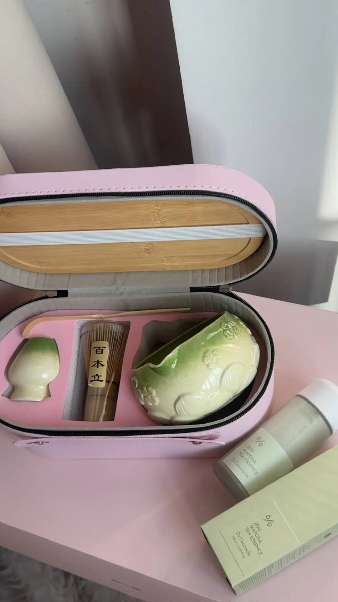 🤍Ох и ах — какой же он приятный, и какая мягкая, блестящая и бархатная с ним кожа. Про набор для домашнего ритуала матчи в розовом кейсе/косметичке молчу — это 10/10!