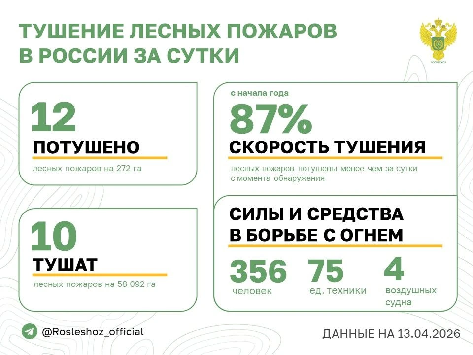 🟢 Интерфакс: Площадь лесных пожаров в РФ в 2026 году выросла в 1,3 раза, их число снизилось вдвое