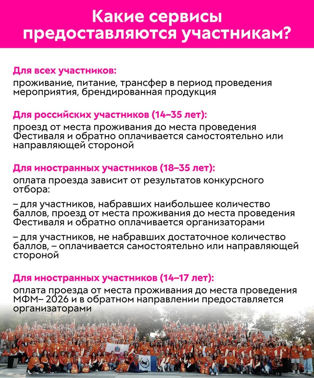 Дали старт регистрации на Международный фестиваль молодёжи – 2026 в Национальном центре «Россия»! Успейте подать заявку по ссылке до 30 апреля.