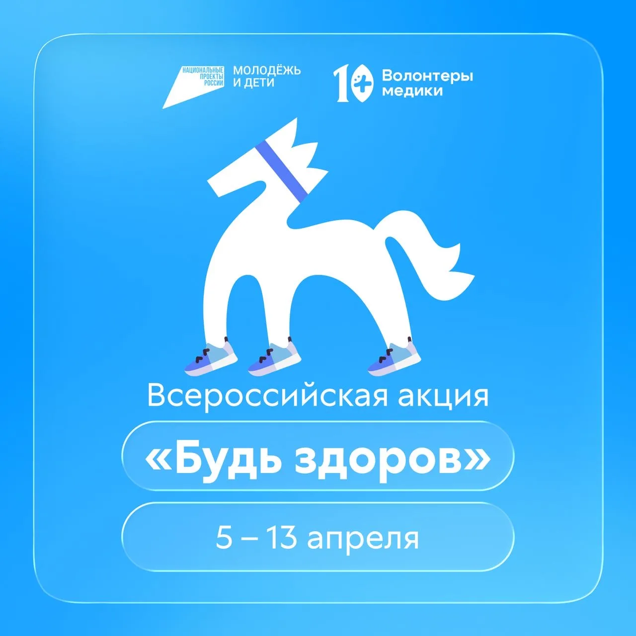 С 5 по 13 апреля Волонтёры-медики проводят Всероссийскую акцию «Будь здоров!», приуроченную ко Всемирному дню здоровья. По всей стране пройдут просветительские мероприятия, мастер‑классы и спортивные активности.