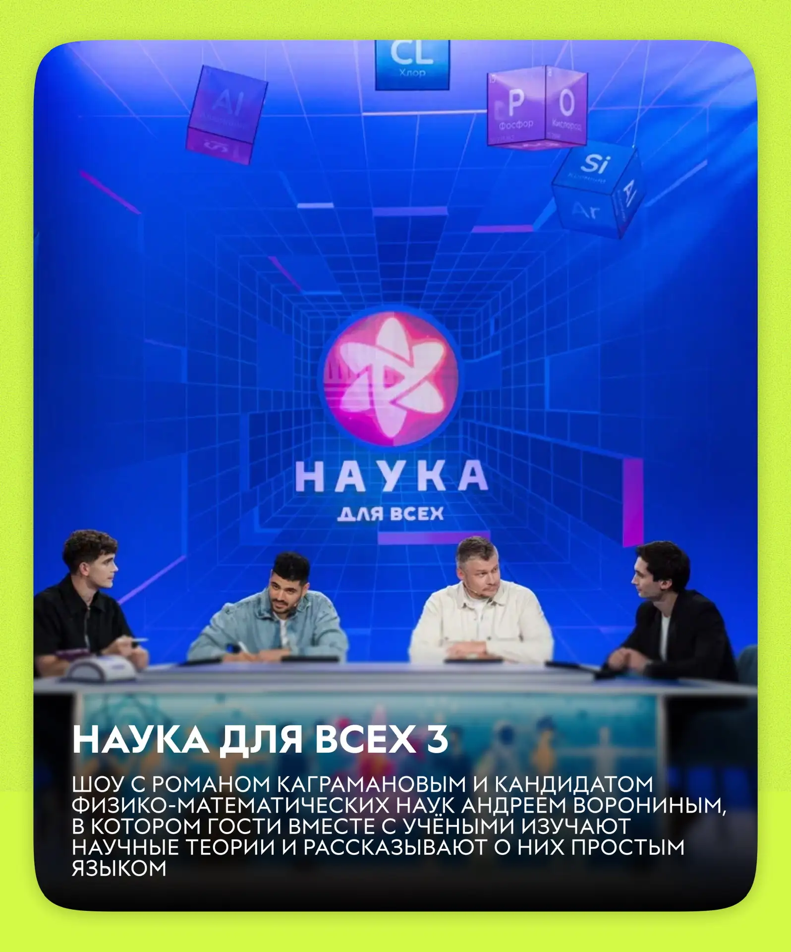 Мы совместно с Институтом развития интернета (ИРИ) поможем разобраться! Подготовили для вас подборку научных шоу. Подробнее – в наших карточках!