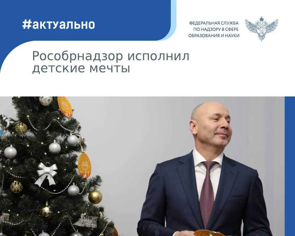 Руководитель Федеральной службы по надзору в сфере образования и науки Анзор Музаев исполнил мечту трехлетнего Эрика из деревни Лобаново Московской области. Мальчик хотел игровой набор по мотивам любимого мультсериала. До наступления Нового года его желание сбылось: Эрик получил заветный подарок, сладкий сюрприз и поздравительную открытку. Передали их представители Молодежного совета при Рособрнадзоре вместе с членами Профсоюза надзорной службы.