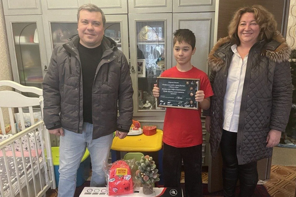 🎁 Второй подарок нашел своего адресата в городе Королев. 12-летний Ренат мечтал о самокате на Новый год, и его мечта сбылась. Представители Профсоюза и Молодежного совета Рособрнадзора вручили ему долгожданный самокат, сладкий подарок и поздравительную открытку.