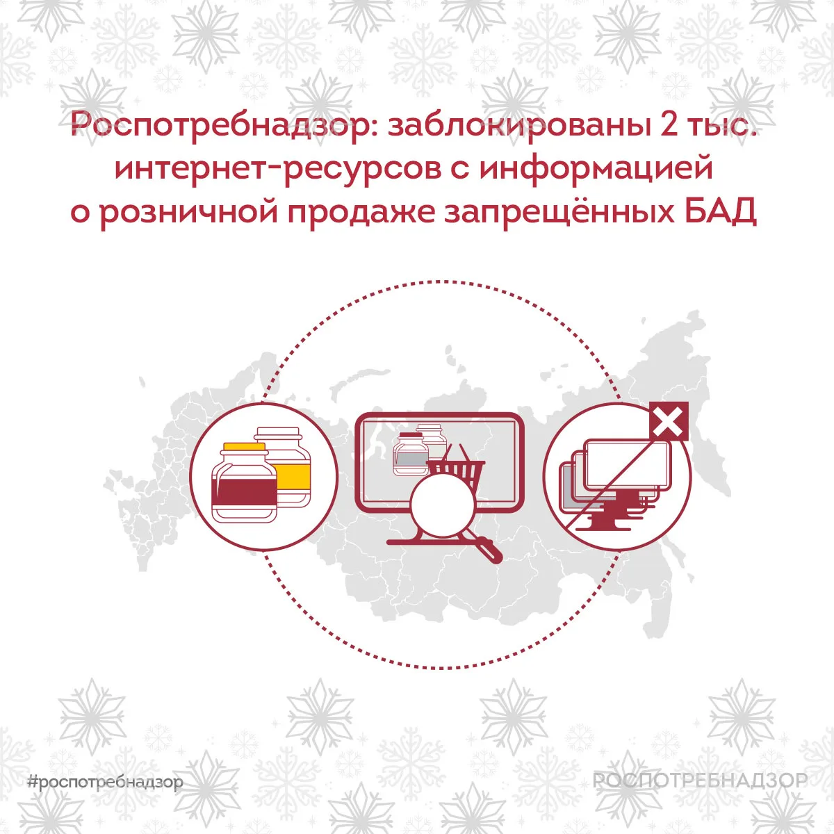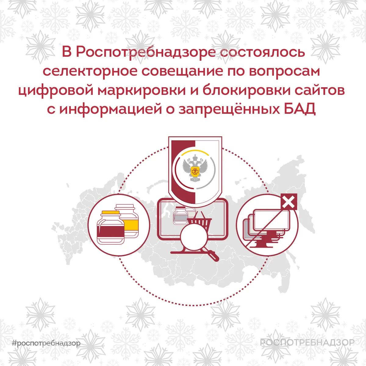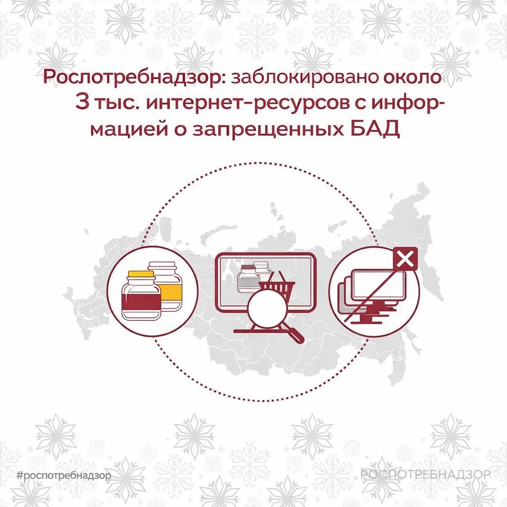 🔒 Роспотребнадзор продолжает работу по выявлению и блокировке интернет-ресурсов, распространяющих информацию о розничной продаже биологически активных добавок (БАД), реализация которых запрещена в России. Мероприятия проводятся во взаимодействии с Роскомнадзором и направлены на снижение рисков для здоровья населения и на соблюдение требований законодательства.