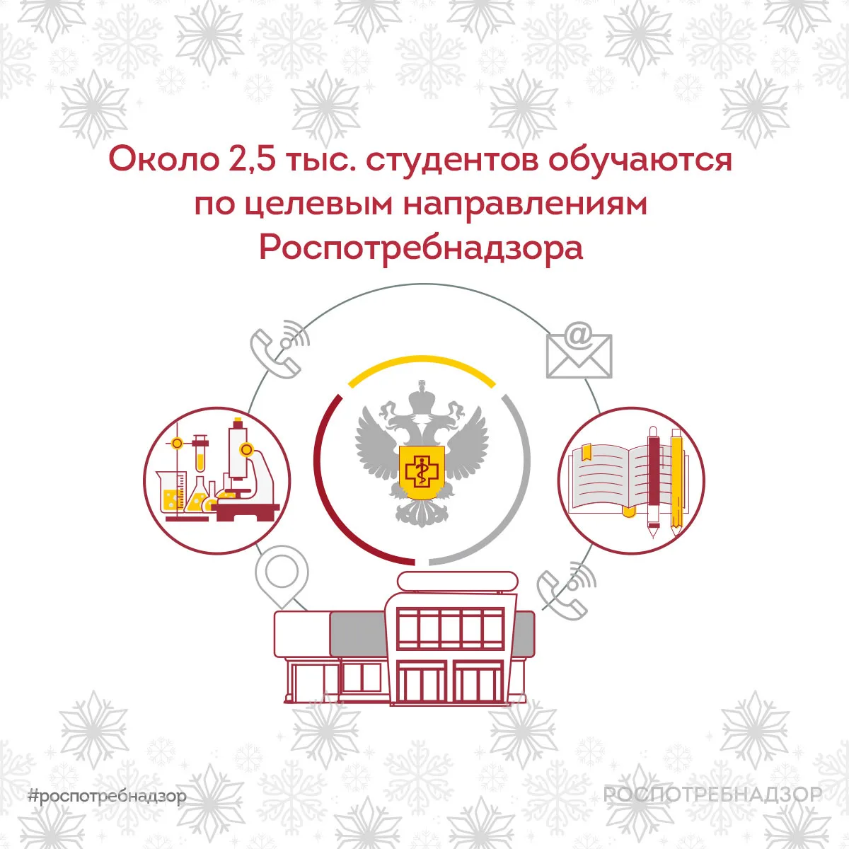 🗓 25 января в России традиционно отмечается День российского студенчества. Сегодня по целевым направлениям Роспотребнадзора обучаются около 2️⃣,5️⃣ тыс. студентов – будущих специалистов в области гигиены, эпидемиологии и профилактики заболеваний.