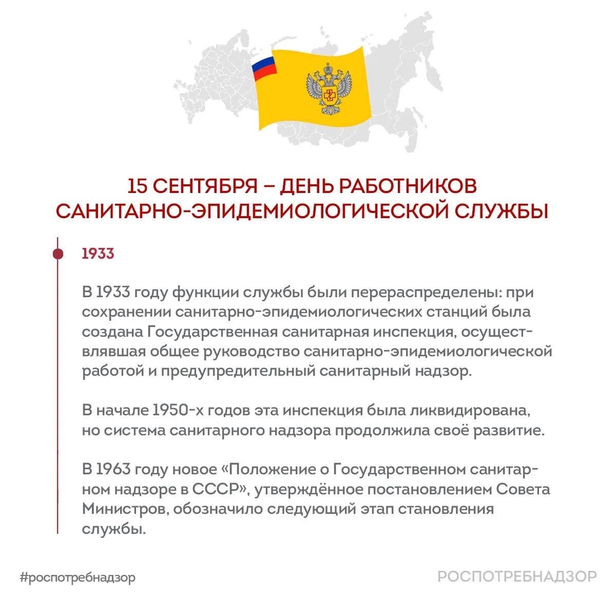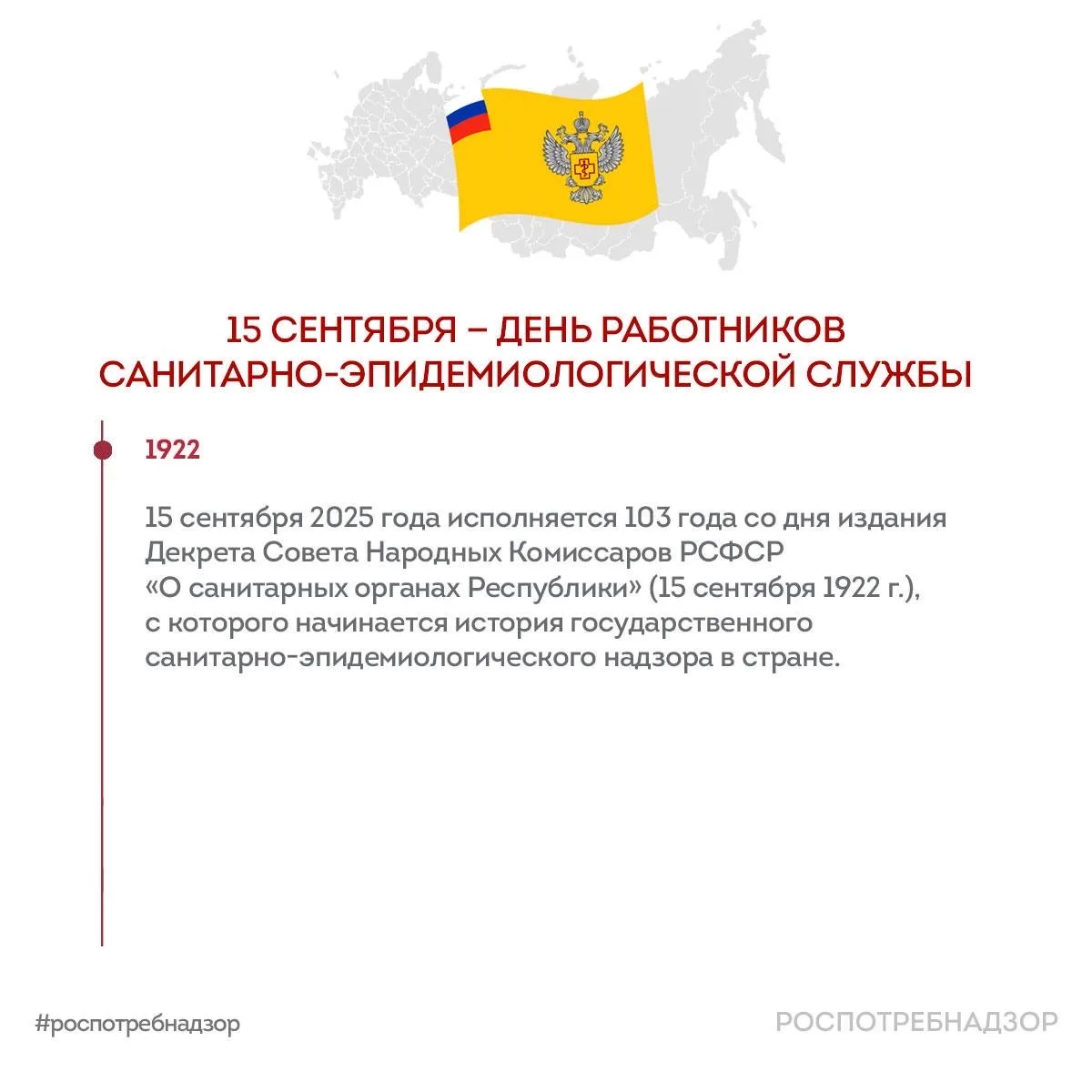 ☀️ 15 сентября – 103 года со дня образования Государственной санитарно-эпидемиологической службы России! 🇷🇺