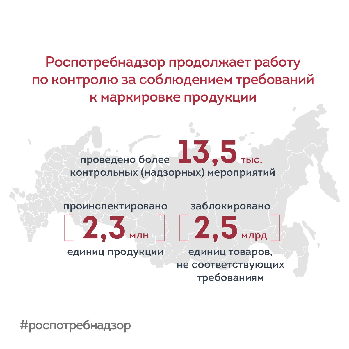 Сотрудниками Роспотребнадзора были проинспектированы 2,3 млн единиц продукции, у 25 % проверенного ассортимента были выявлены нарушения цифровой маркировки.