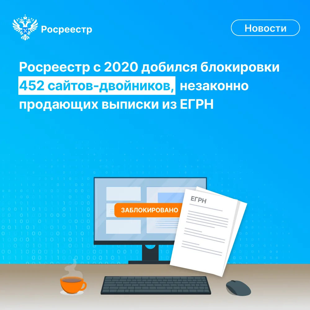 ❗ Росреестр с 2020 года добился блокировки 452 сайтов-двойников, незаконно продающих выписки ЕГРН - https://vk.cc/cTvwEP