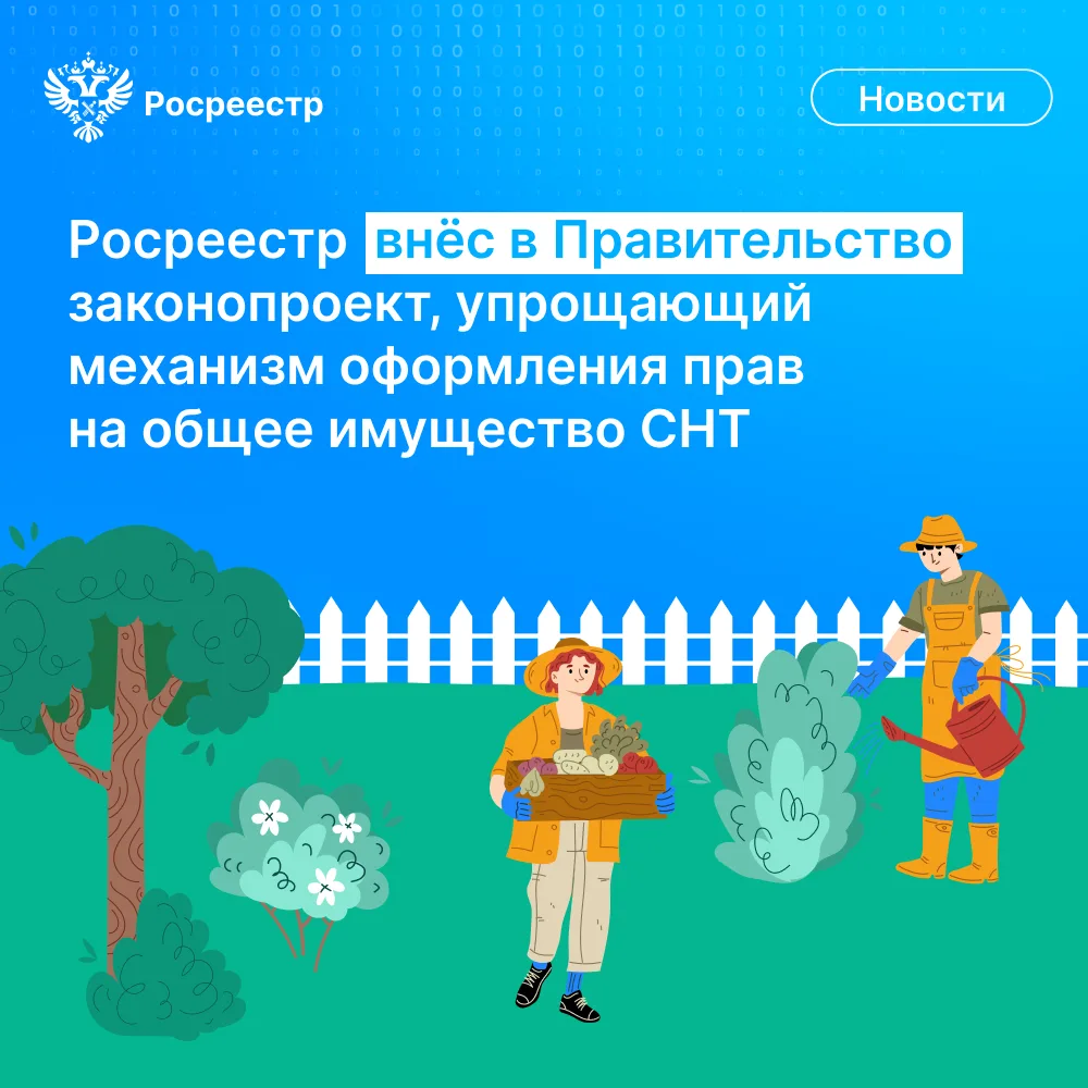 ❗ Друзья, важная информация для дачников и садоводов. Росреестр внёс в Правительство РФ законопроект, упрощающий механизм оформления прав на общее имущество СНТ. Это дороги, инженерные коммуникации, спортивные площадки и другое имущество на территории СНТ, которым пользуются все члены товарищества.