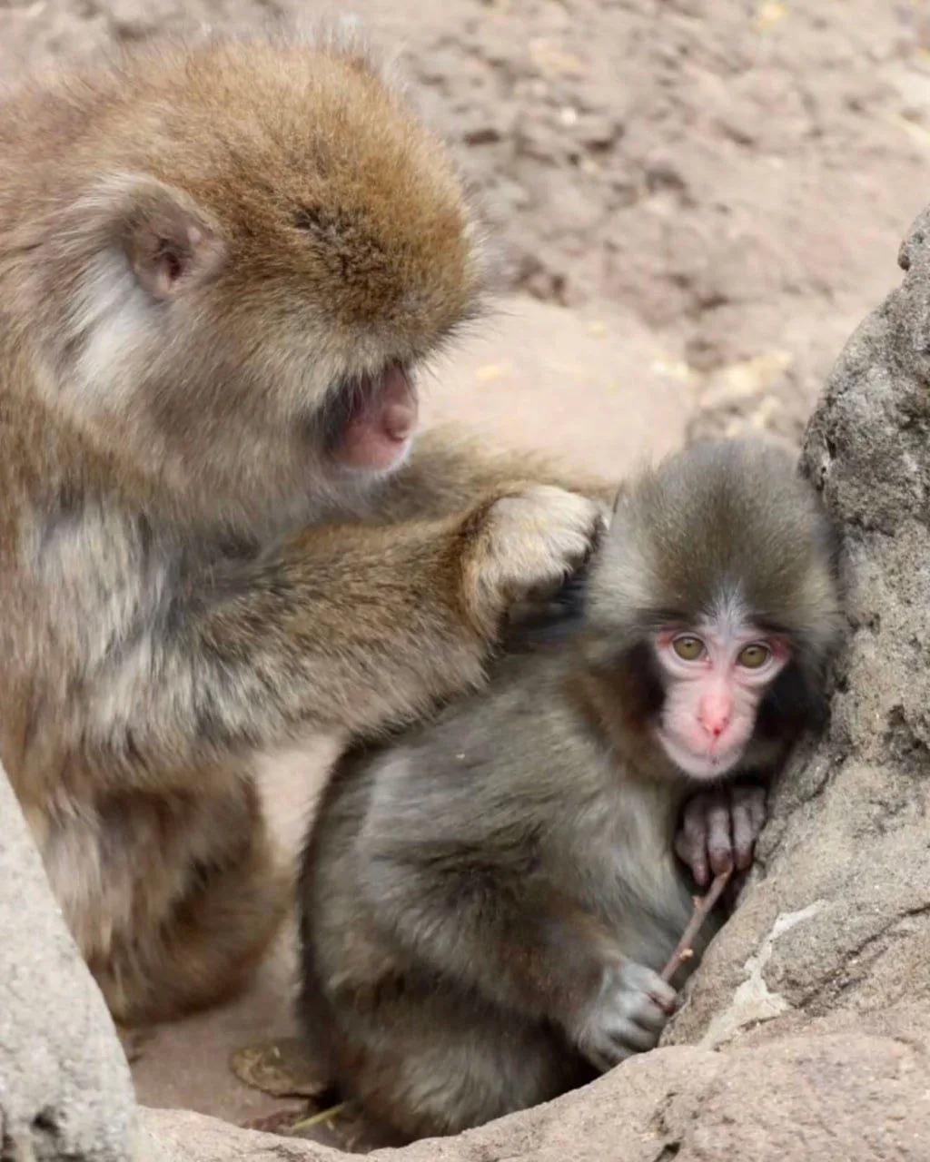 Теперь он подружился с другой обезьяной, которая начала о нём заботиться и вычёсывать блох.