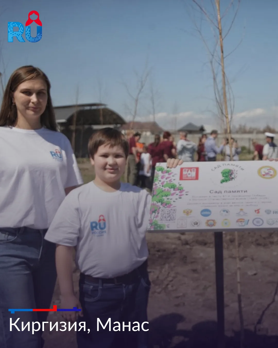 🇰🇬 Значительный масштаб мероприятие приобрело в городе Манас, где в Парке дружбы регионов Кыргызстана и России было высажено порядка 150 саженцев различных пород деревьев. Акция объединила представителей органов власти, общественных организаций, волонтёров, военнослужащих, студентов и школьников. Всего участие приняли около 300 человек, включая руководство региона, представителей Генерального консульства России, Россотрудничества и авиабазы «Кант». Высадка деревьев стала символом единства, исторической памяти и уважения к героическому прошлому.
