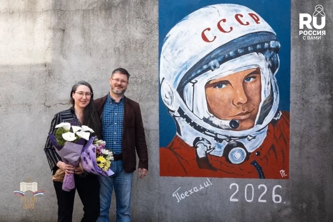 🌍 Бюст передан в дар Международным благотворительным фондом «Диалог культур — Единый мир». Мурал на территории Русского дома создал замбийский художник Вайсон Нкхата специально к 65-летию полёта Юрия Гагарина.
