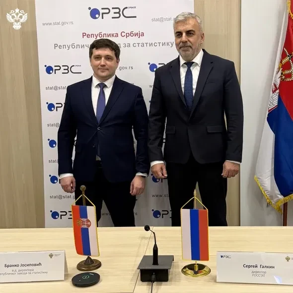 Делегация Росстата во главе с Сергеем Галкиным встретилась с руководством Статистического управления Республики Сербия. Обсудили цифровую трансформацию статистического производства, технологические решения и кадровые практики.