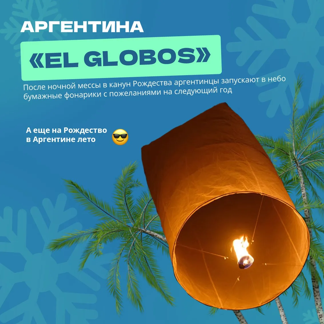 А в Аргентине Рождество — летний праздник. Принято собираться с семьей, посещать ночную мессу в церквях, а после– запускать в небо бумажные фонарики и фейерверки.